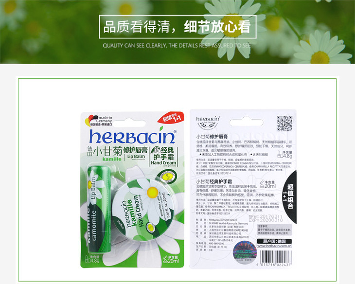 德国 小甘菊/贺本清 敏感修护唇膏护手霜套装 到27年7月