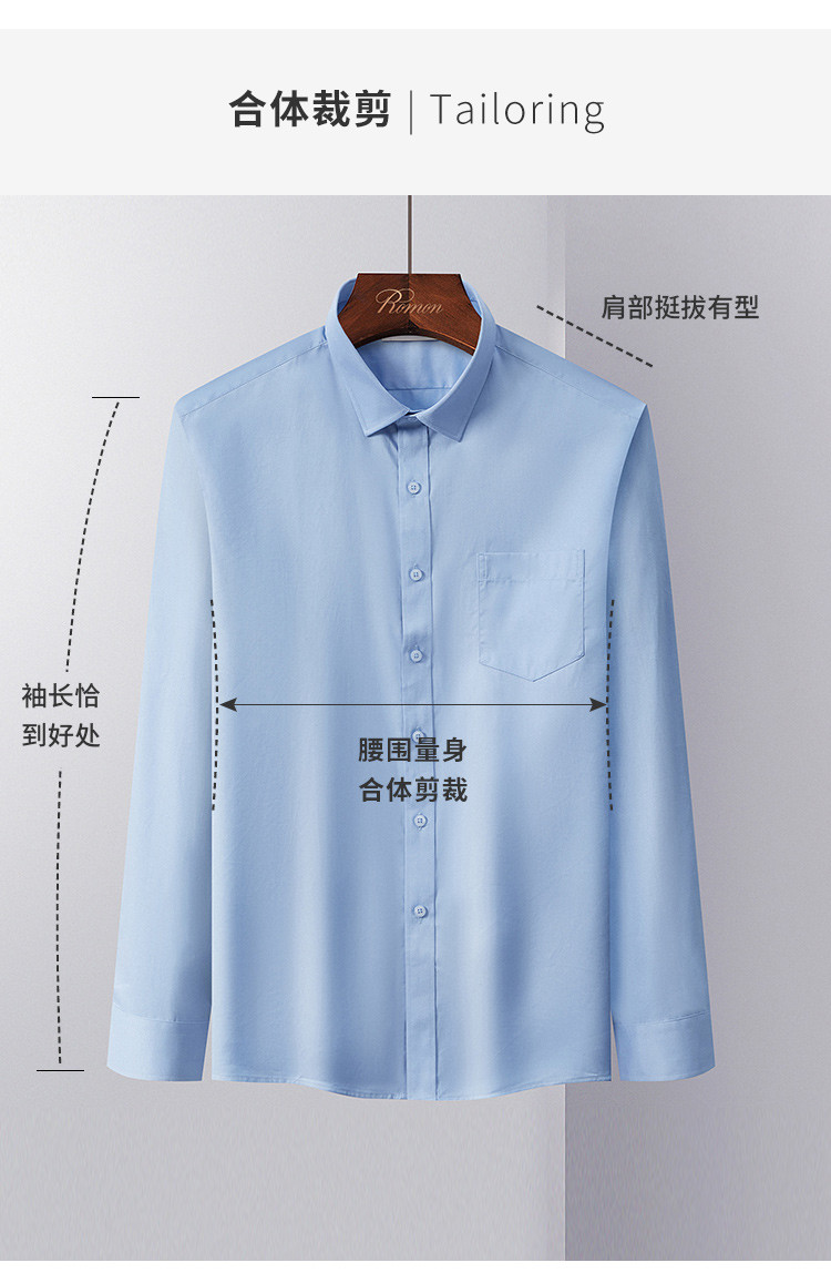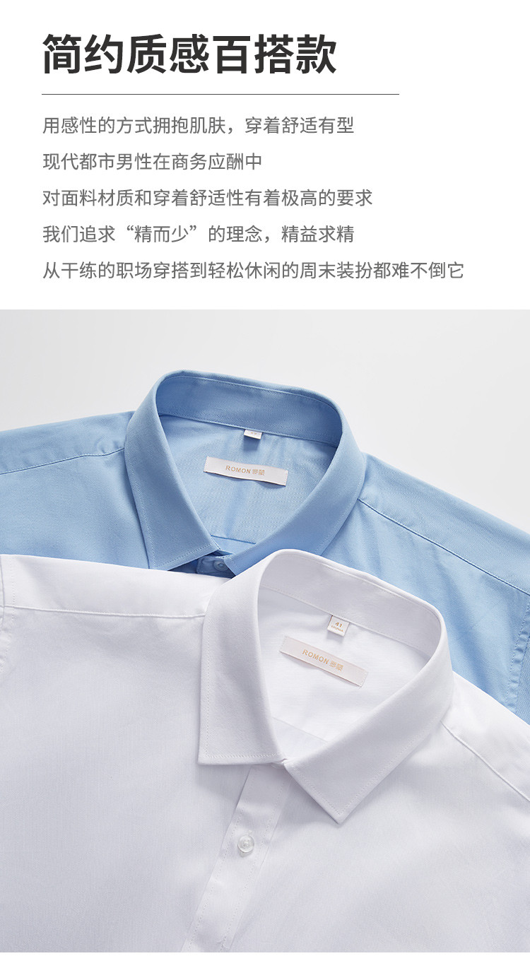【纯棉免烫】罗蒙男式长袖衬衫商务通勤休闲透气舒适百搭时尚衬衫衬衣男