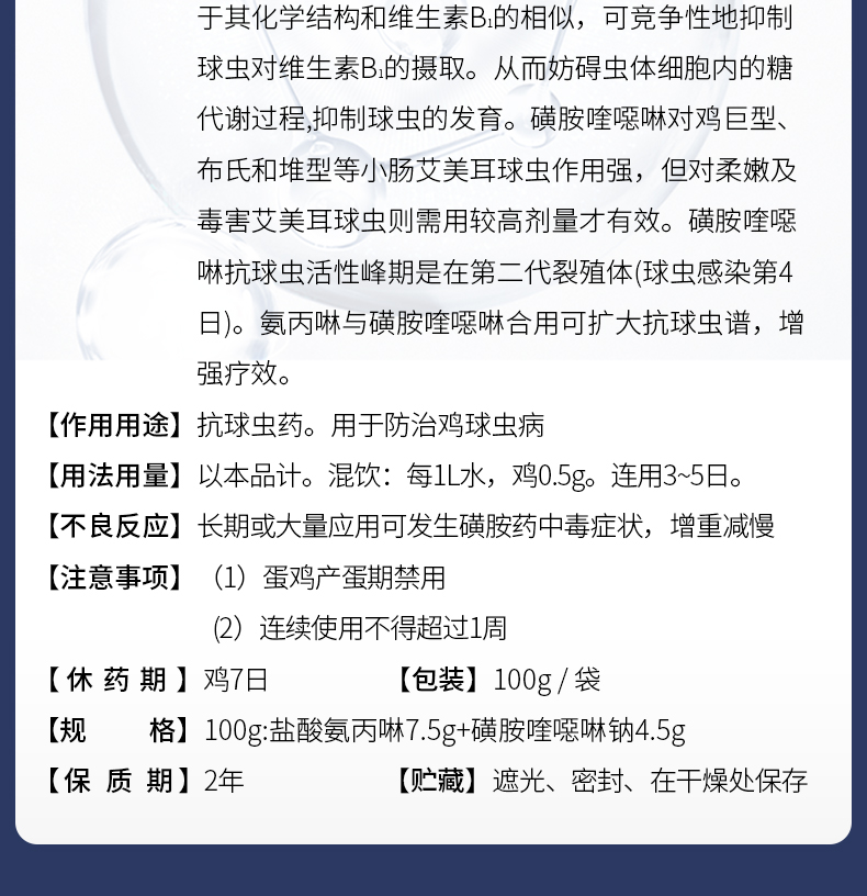 华畜盐酸氨丙啉磺胺喹噁啉钠可溶性粉 抗球虫病鸡鸭鹅球虫病专用药 F 商品图6
