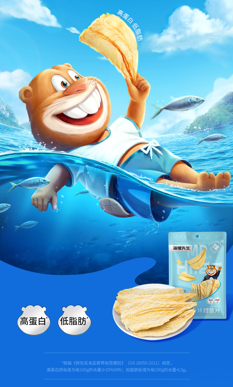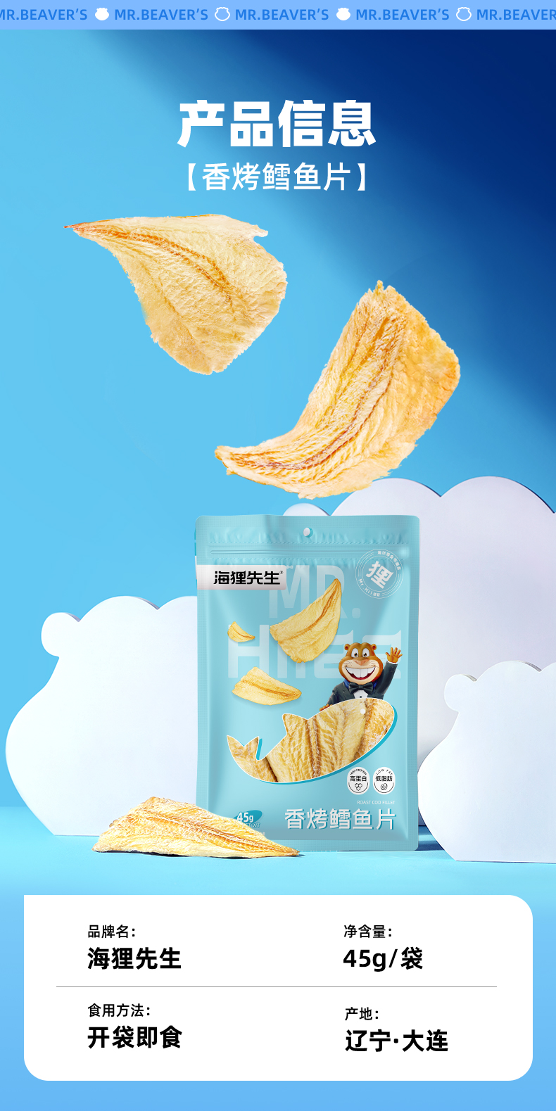 (海洋蛋白零食)海狸先生香烤鳕鱼片45g/袋即食低脂零食小吃