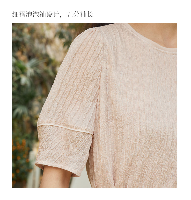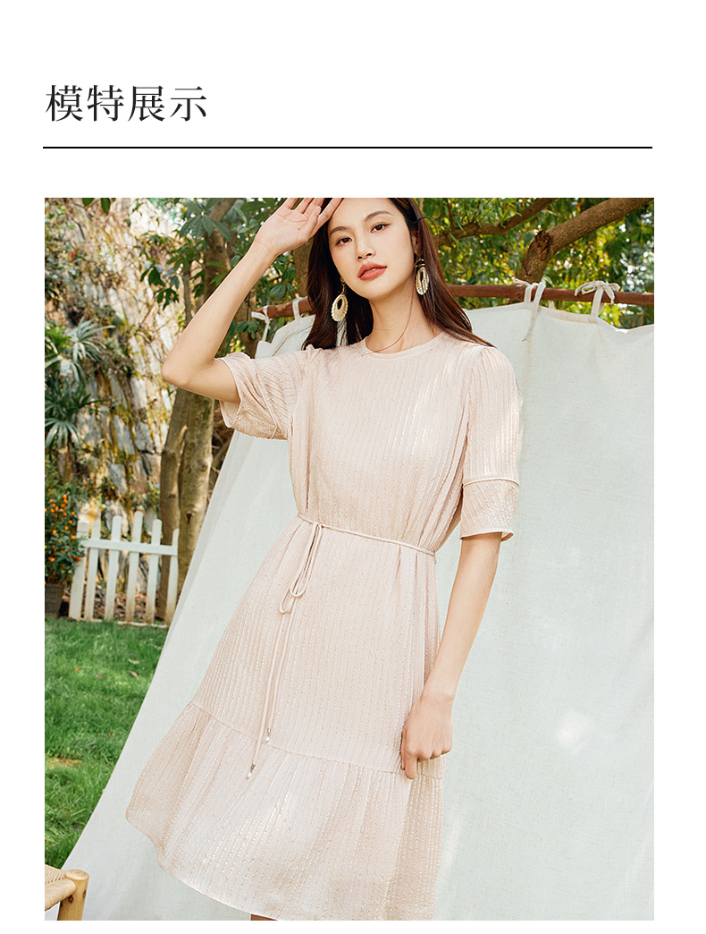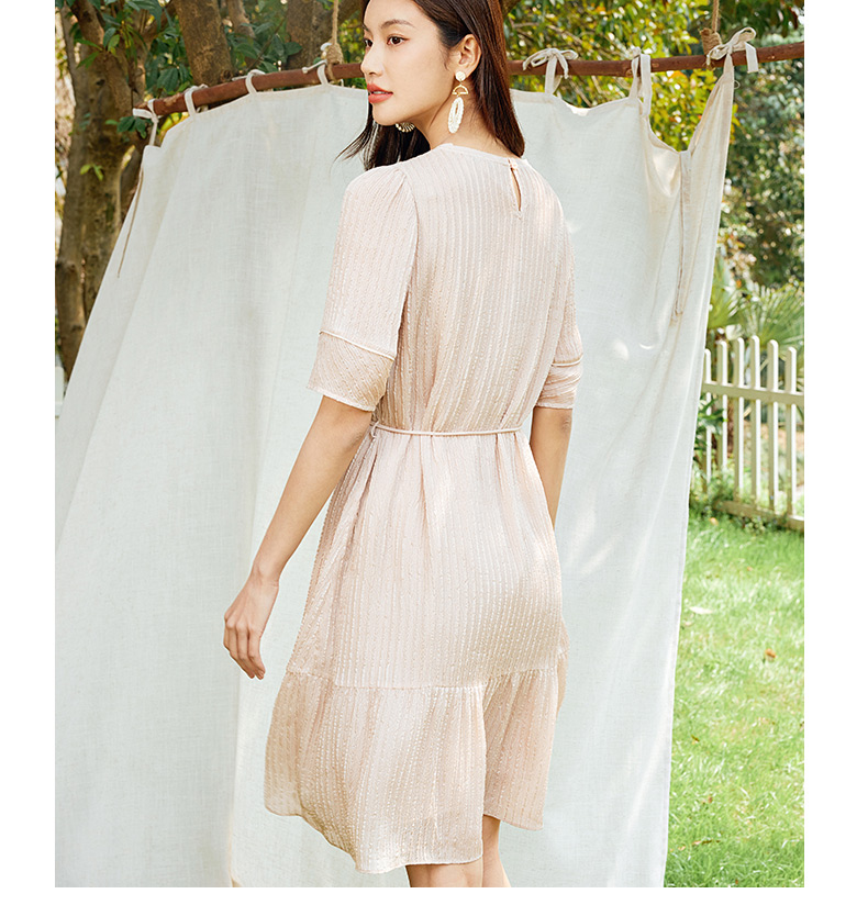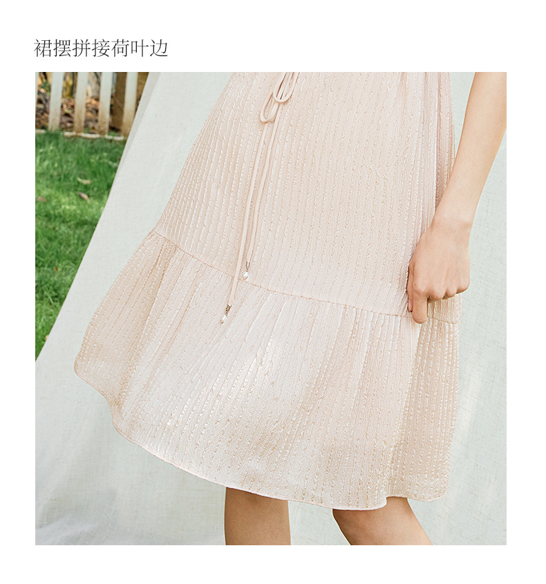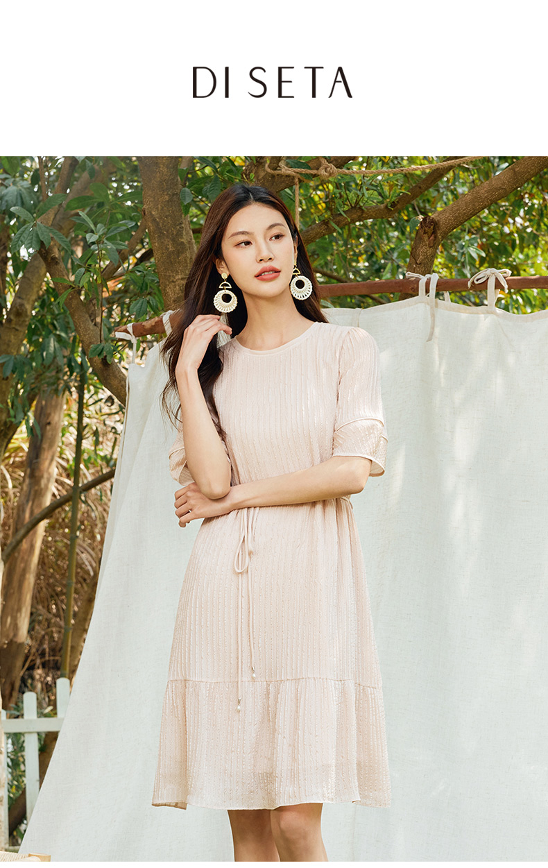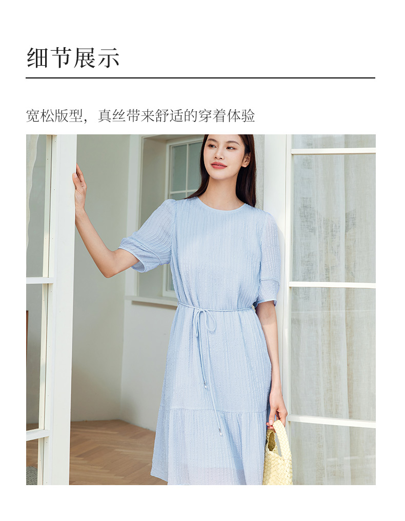 玳莎轻奢柔叠绉真丝连衣裙24夏季新品宽松透气桑蚕丝收腰中长裙 EB35304