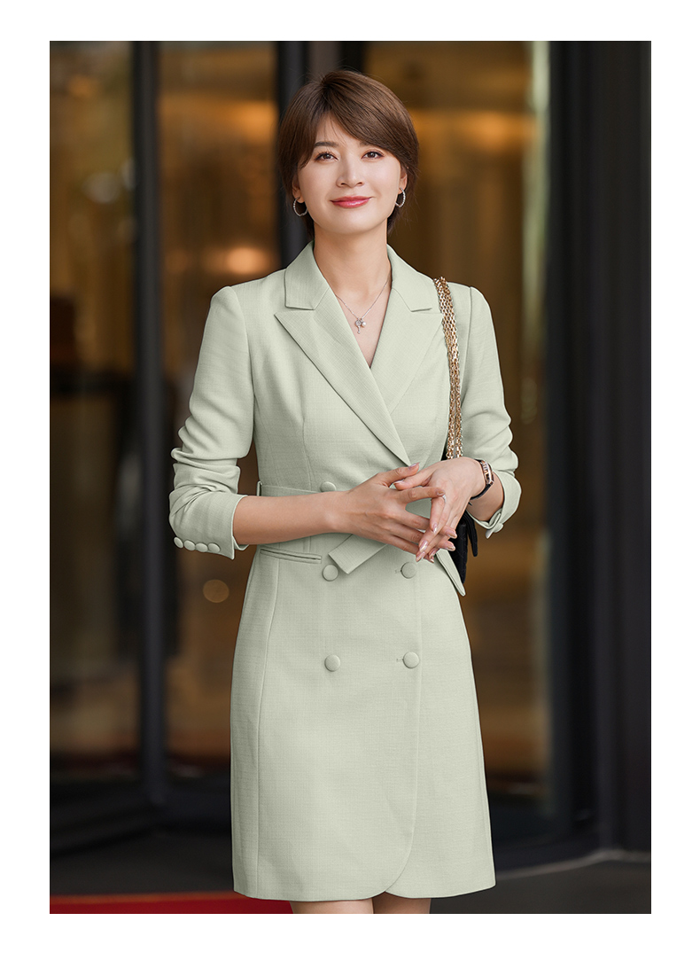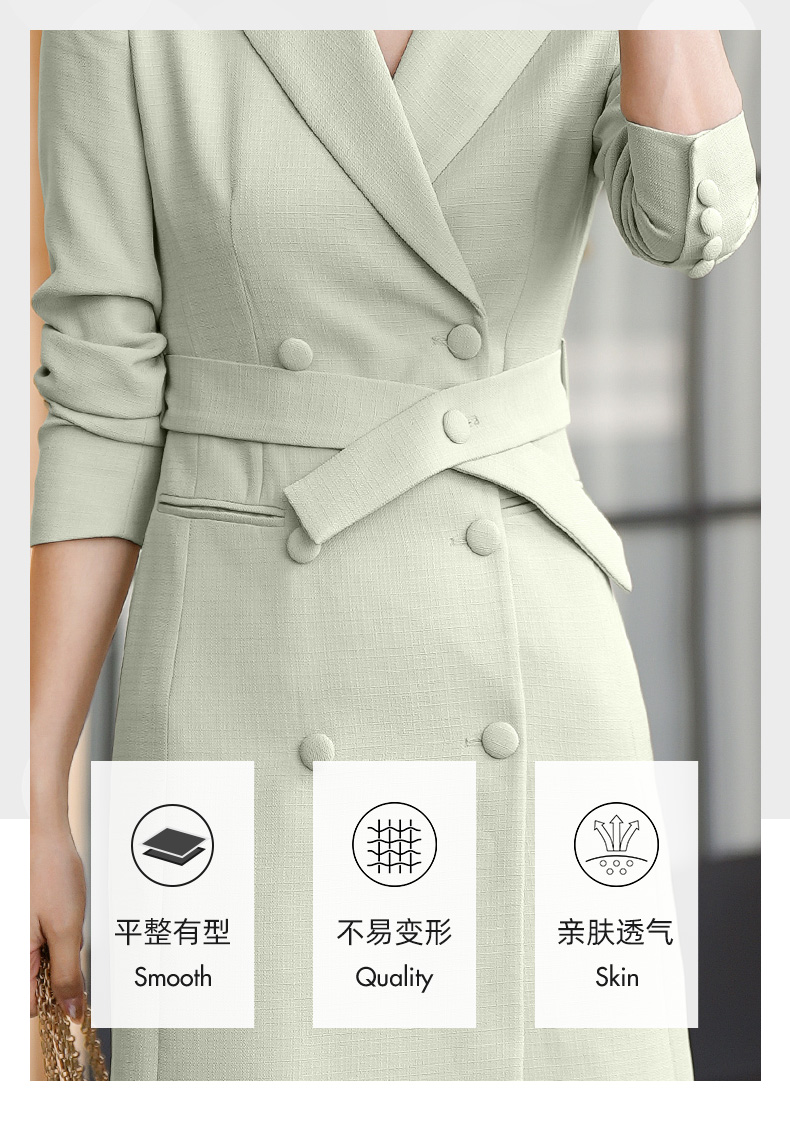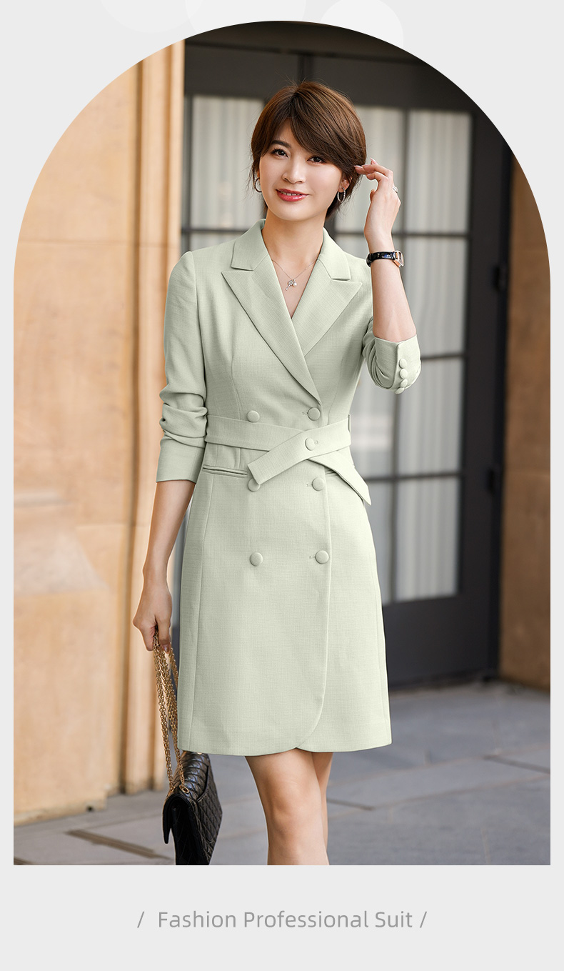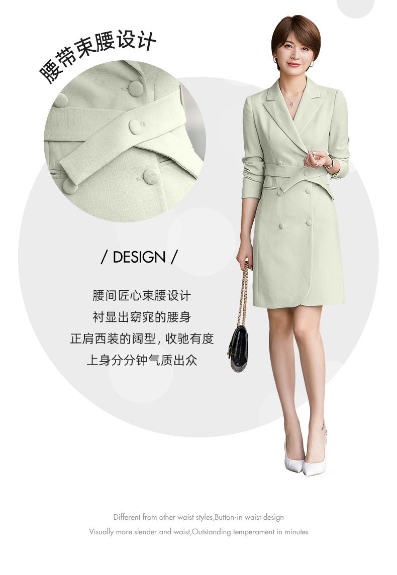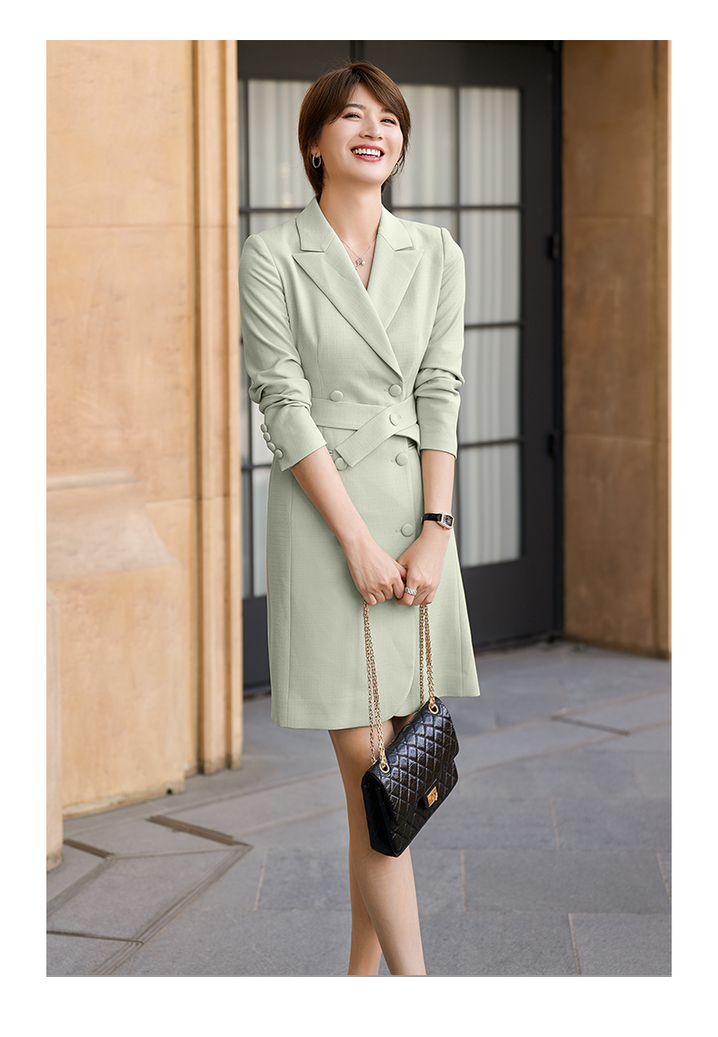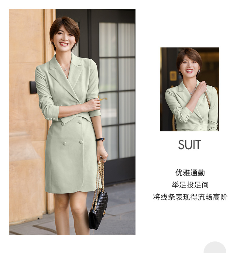 绿色西装连衣裙女2023春装新款双排扣气质收腰通勤职业裙子