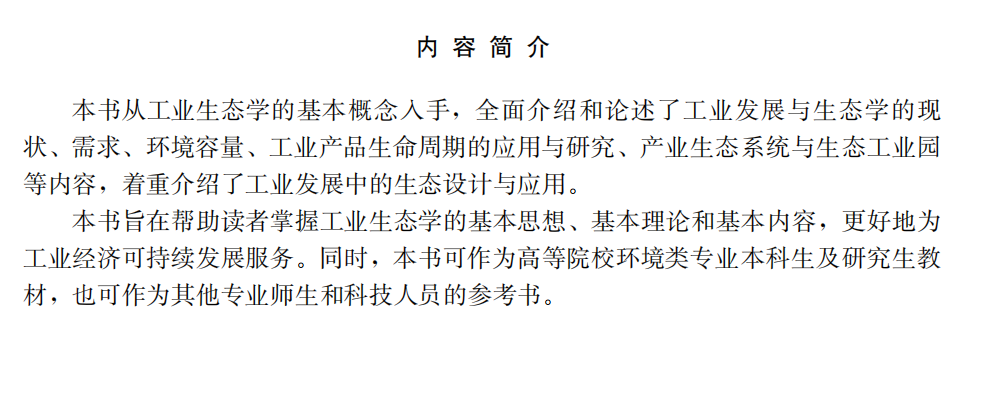 工业生态学/李灿华, 朱书景主编. 中国建设科技出版社, 2024.11. (新时代资源循环科学与工程专业重点规划教材). -- ISBN 9787516042854