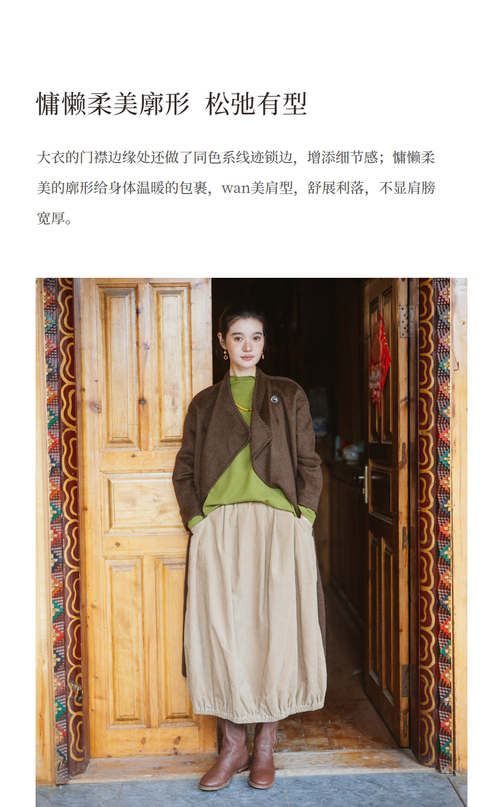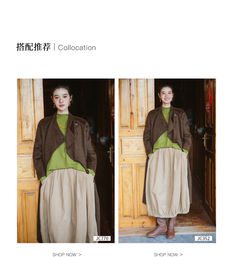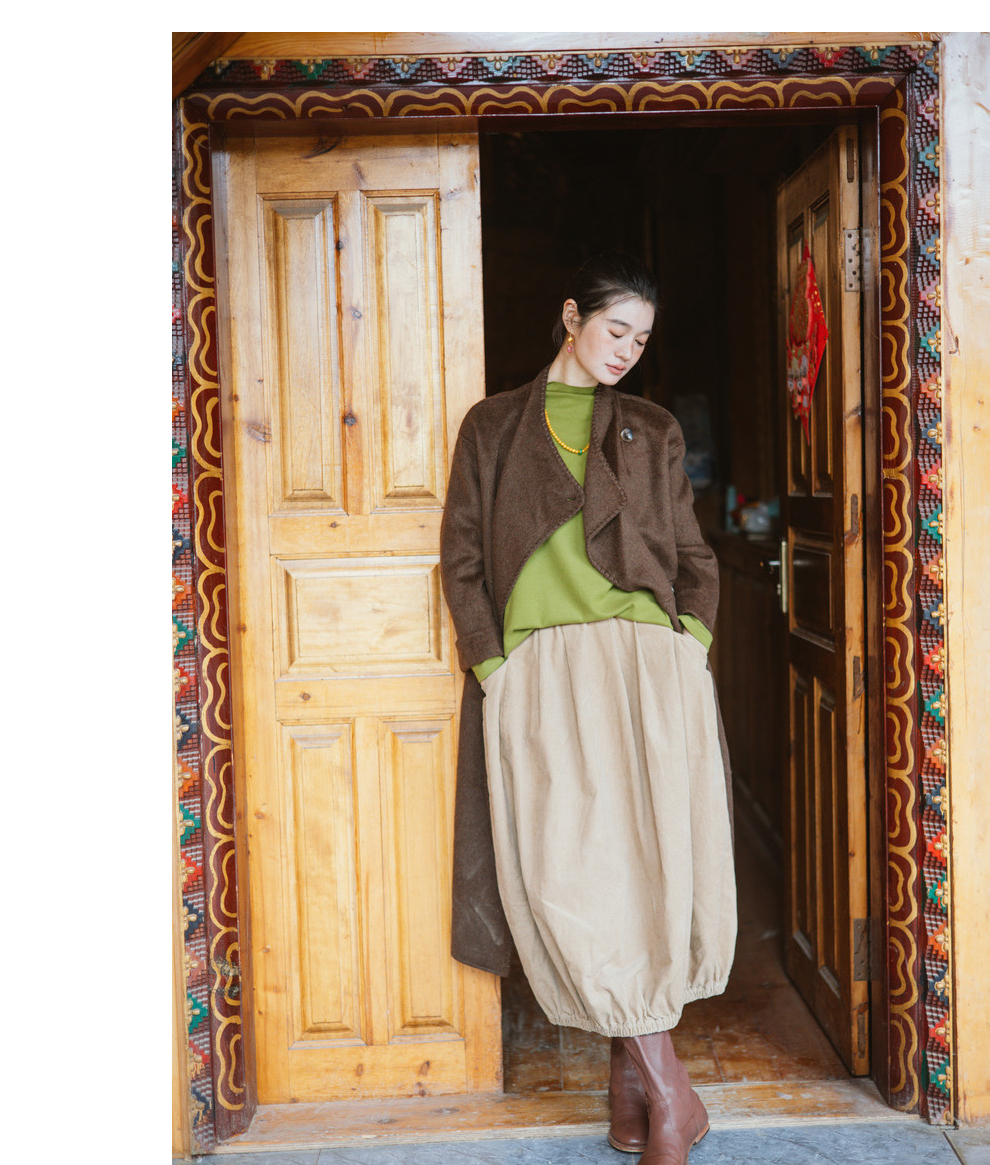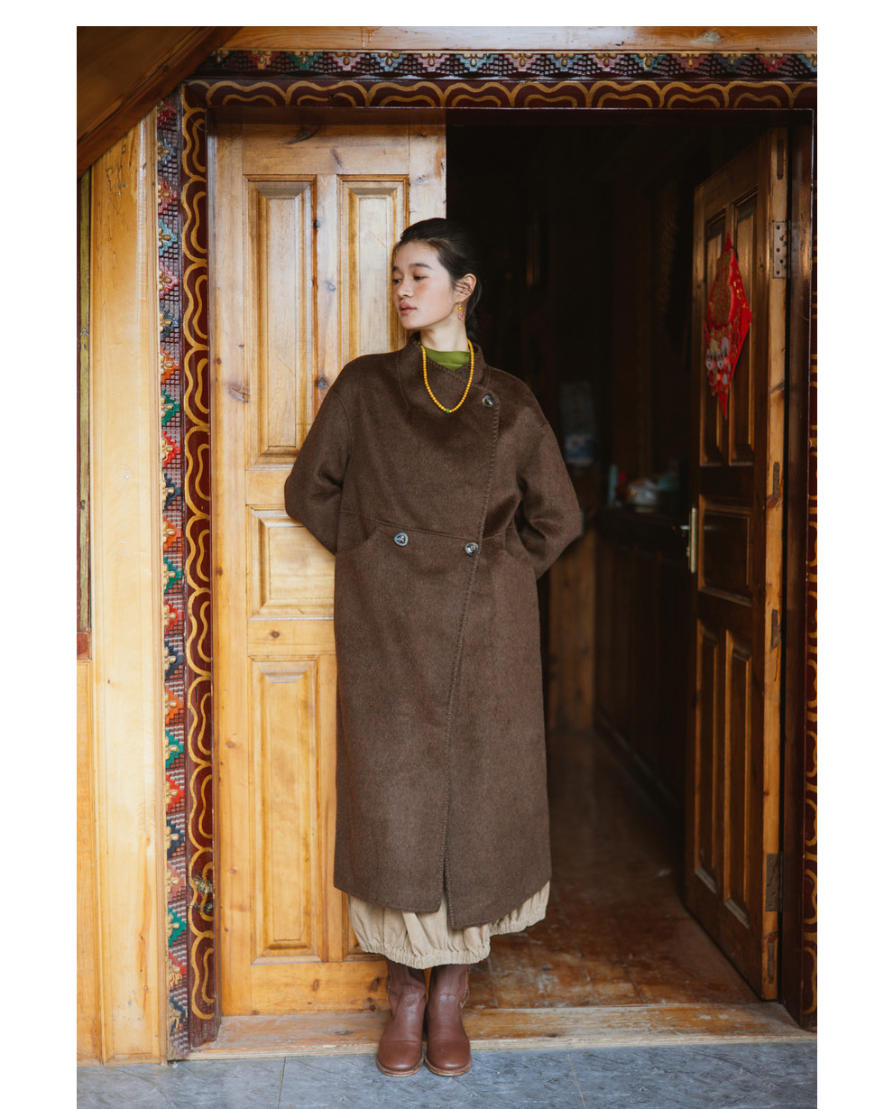 绽放旅行女装803朵/*绵羊毛慵懒垂感大翻领中长款毛呢大衣