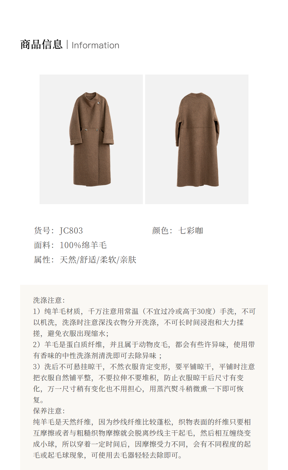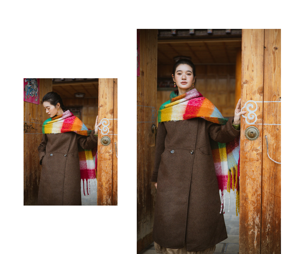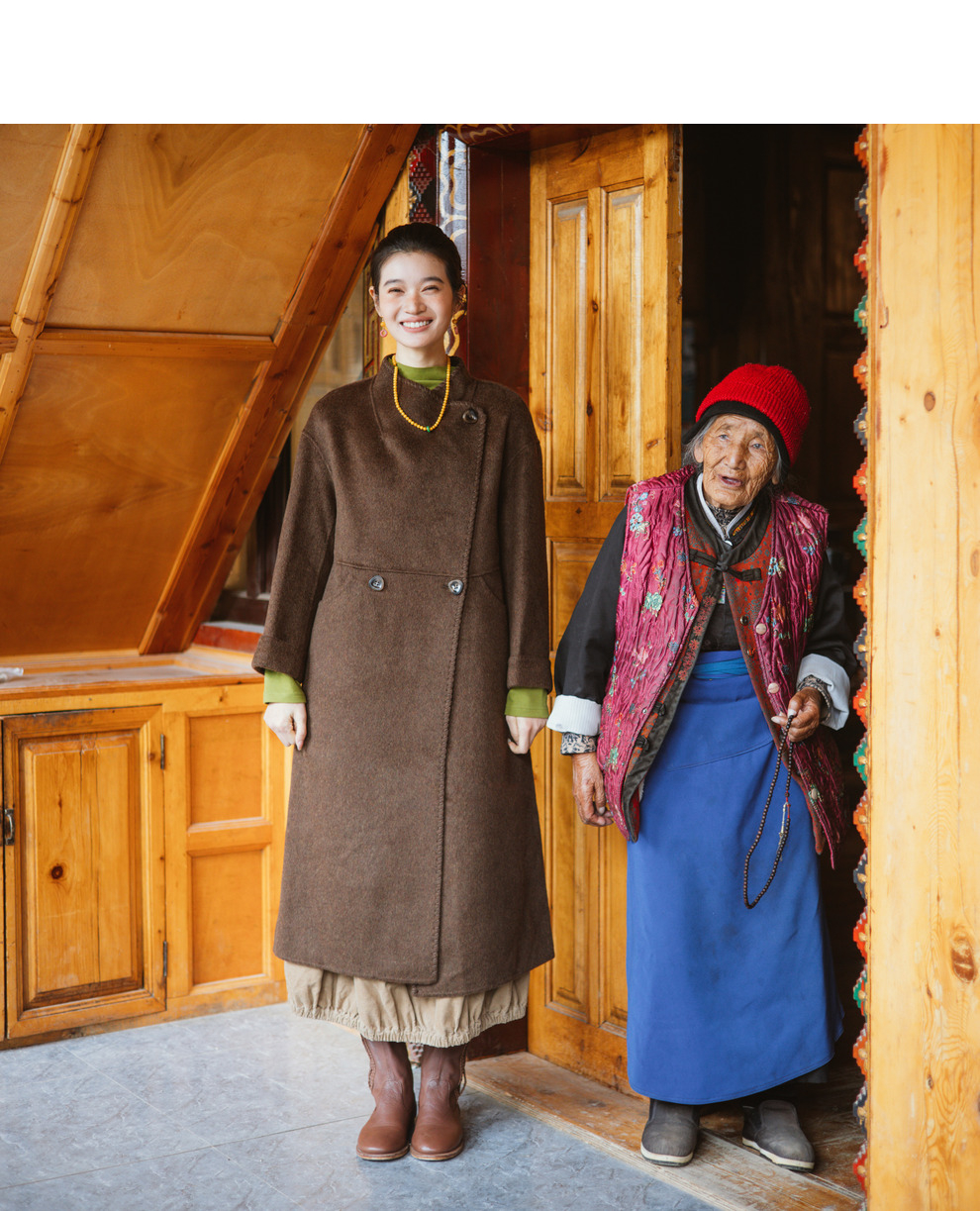 绽放旅行女装803朵/*绵羊毛慵懒垂感大翻领中长款毛呢大衣