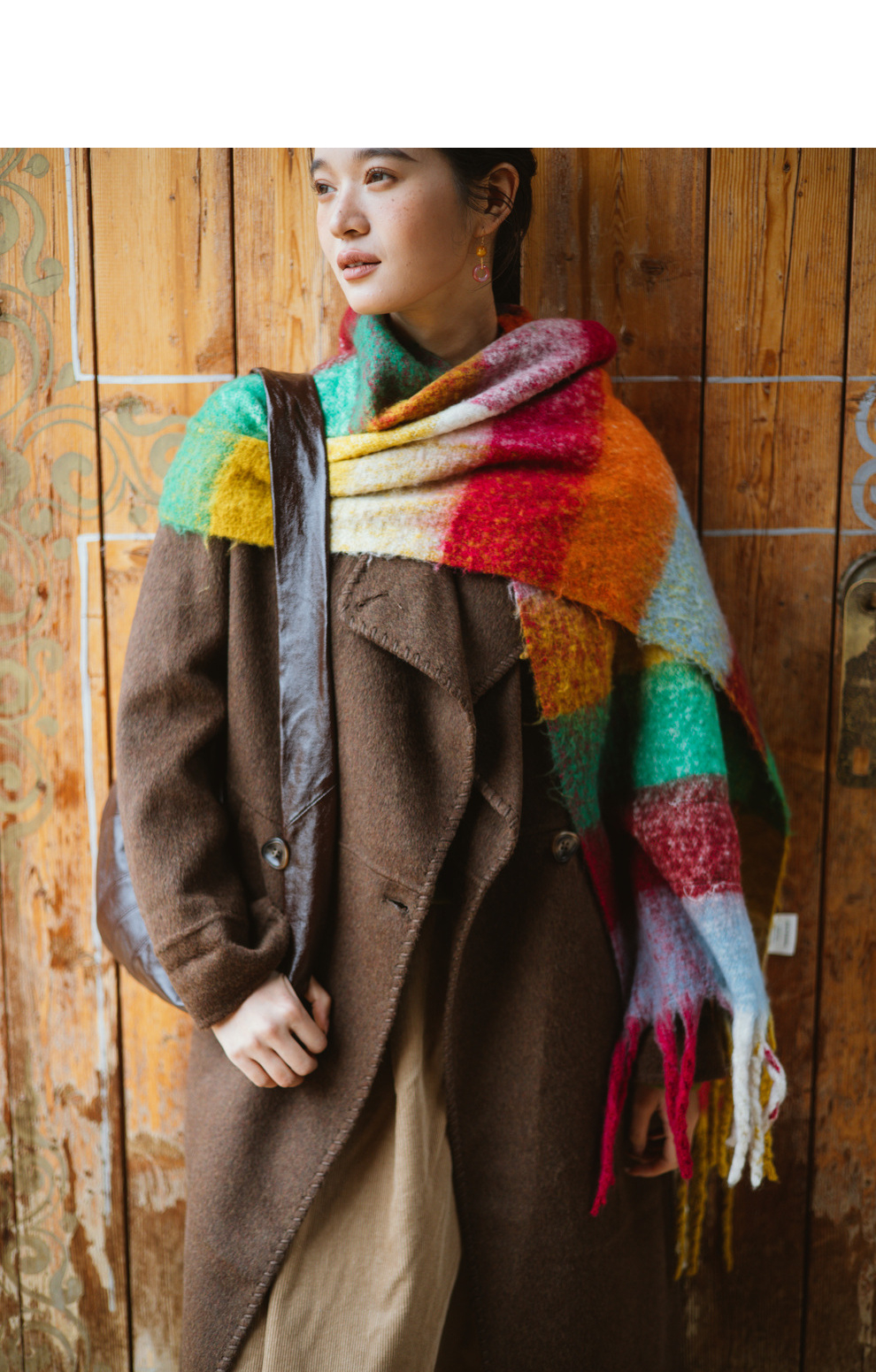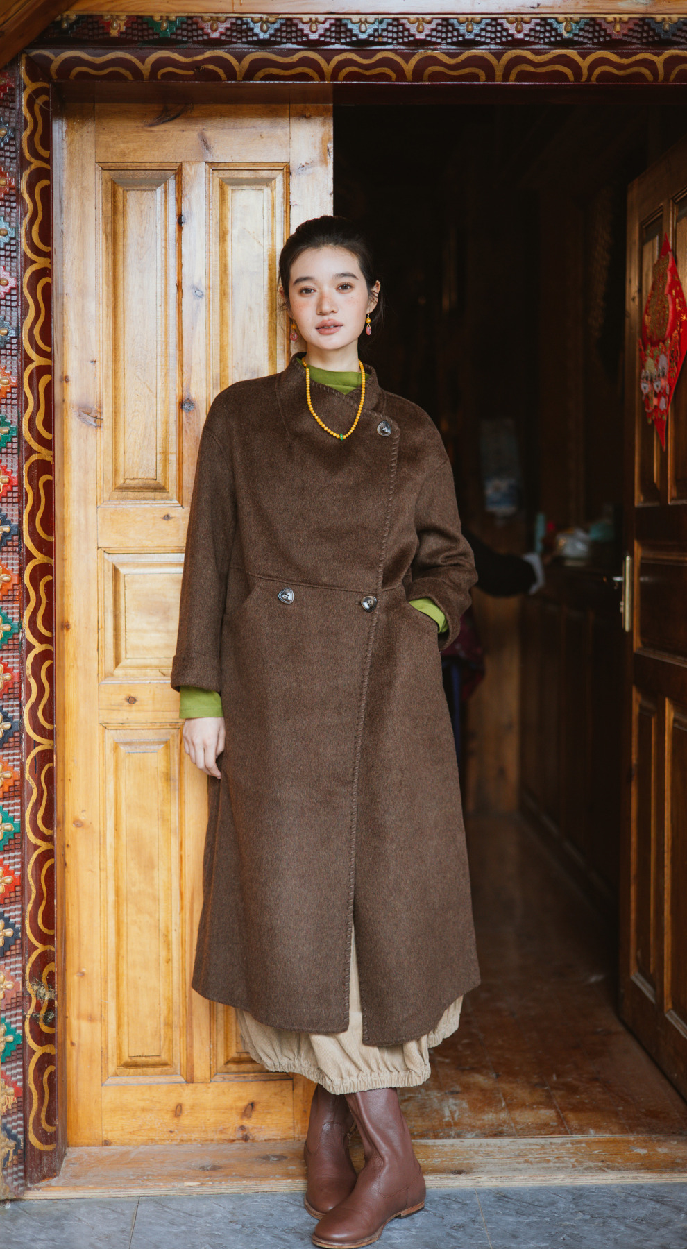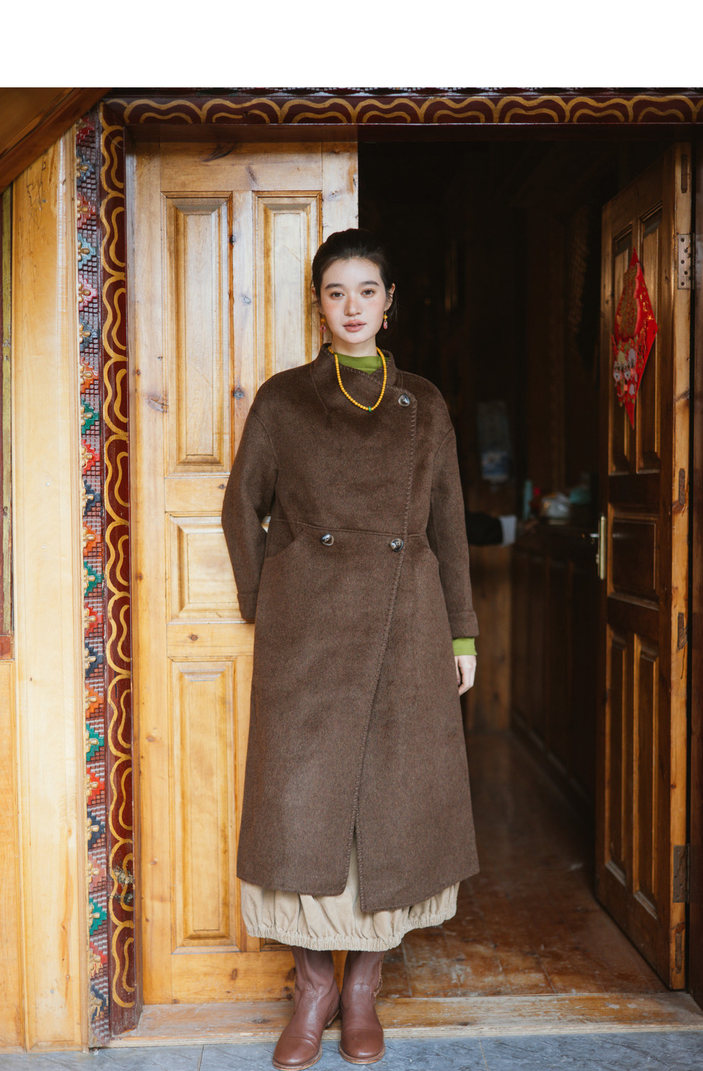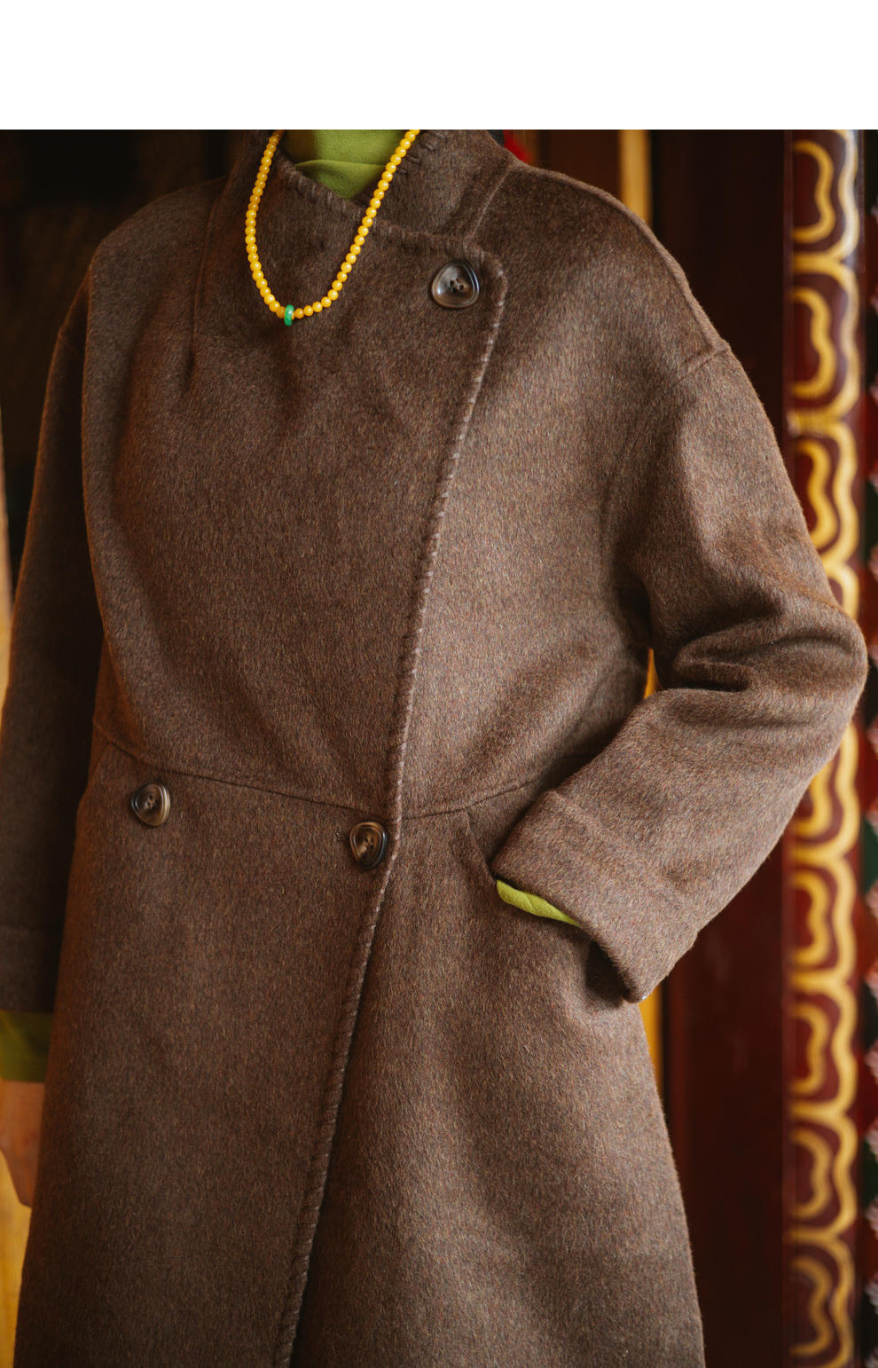绽放旅行女装803朵/*绵羊毛慵懒垂感大翻领中长款毛呢大衣