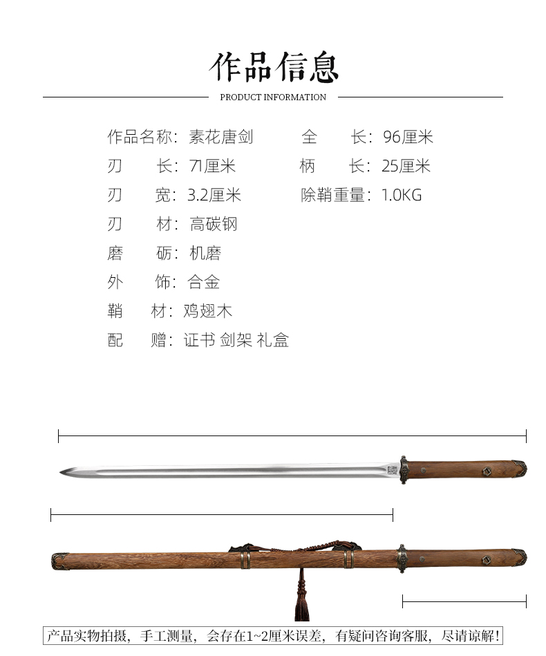 素花唐剑 诸刃唐刀 硬刀剑一体刀剑传统唐剑 龙泉沈广隆宝剑 未开刃