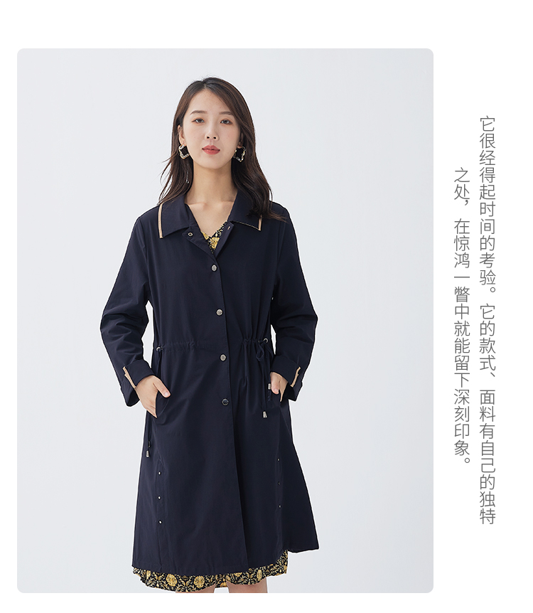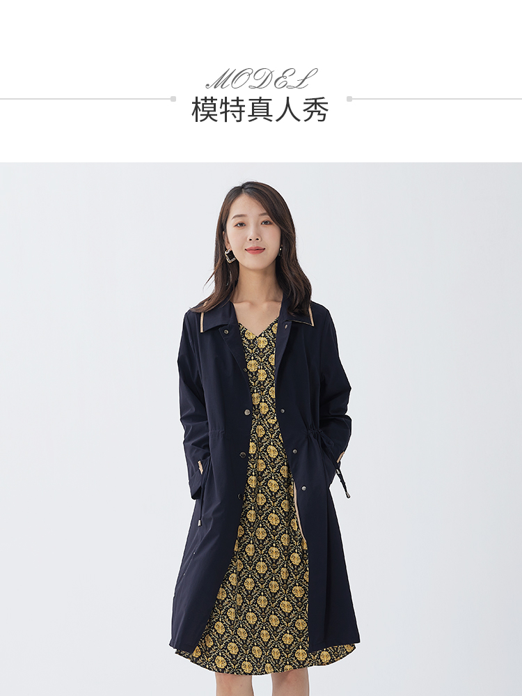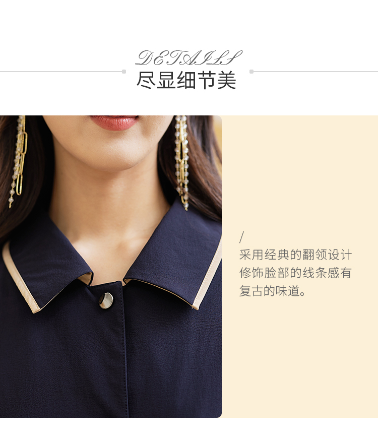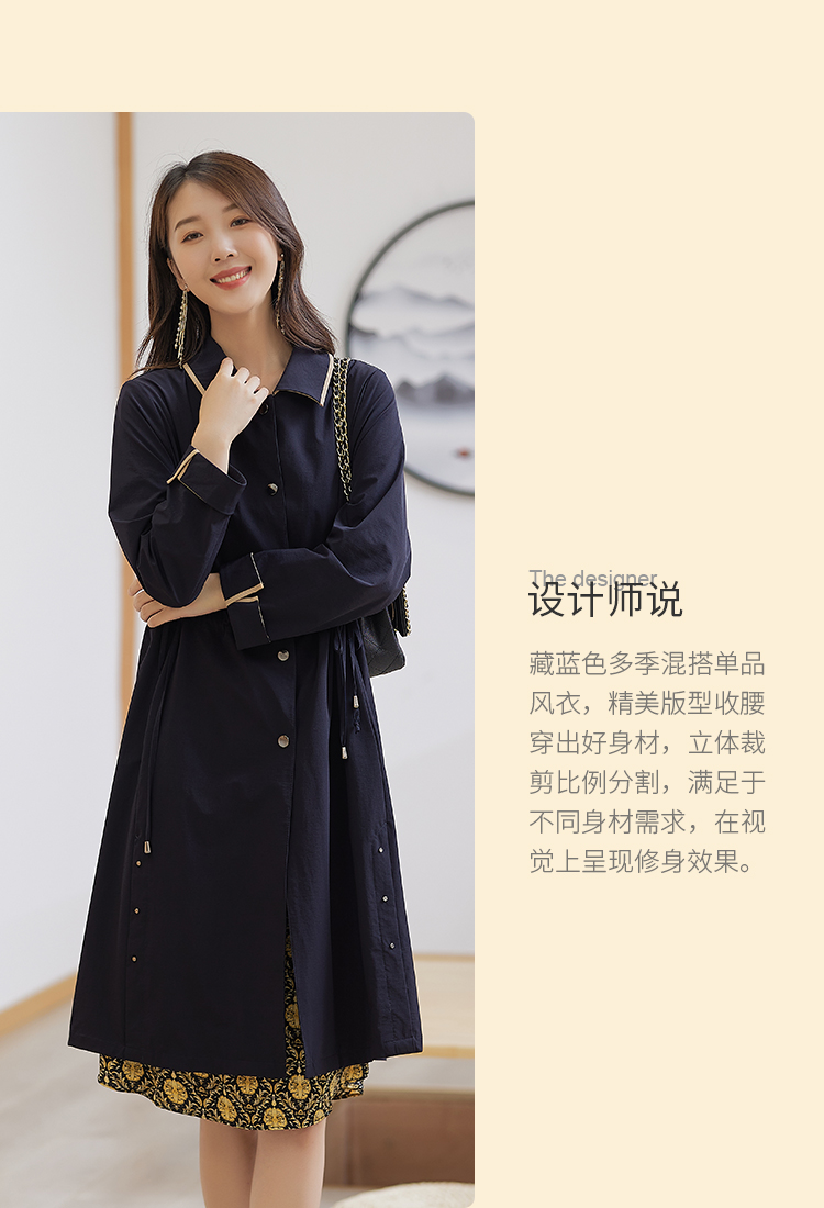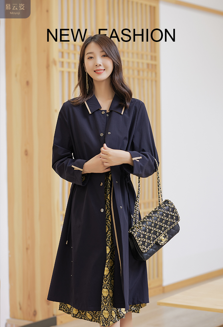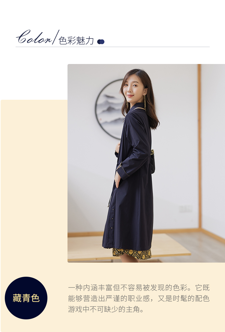【休闲复古,气质好搭】慕云姿2021秋季新款 撞色翻领中长款连衣裙外套
