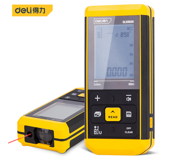 得力激光测距仪大屏语音锂电(黄)