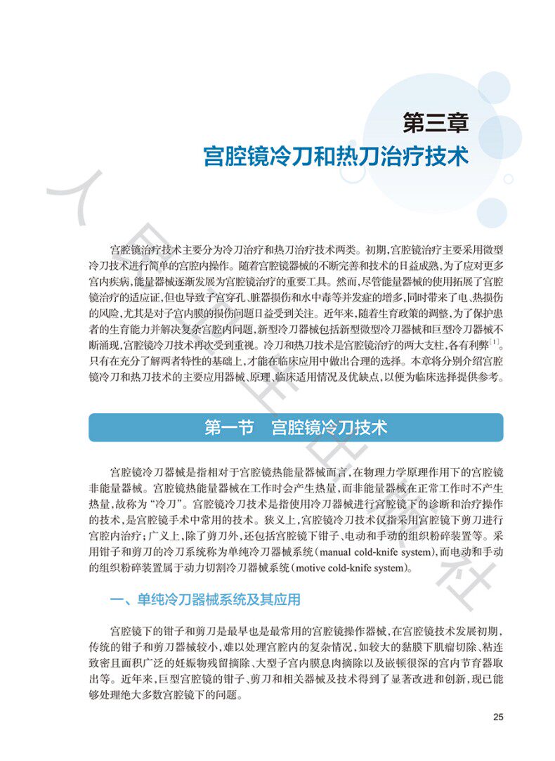 3.本书将近年来宫腔镜冷刀技术为主的治疗知识进行总结并讲解。同时也对其他治疗方法,如宫腔镜热刀治疗和宫腔镜冷刀和热刀治疗相结合的技术进行比较讲解,以充分说明不同技术的优缺点,为读者更加正确的认识和应用这些技术提供参考。