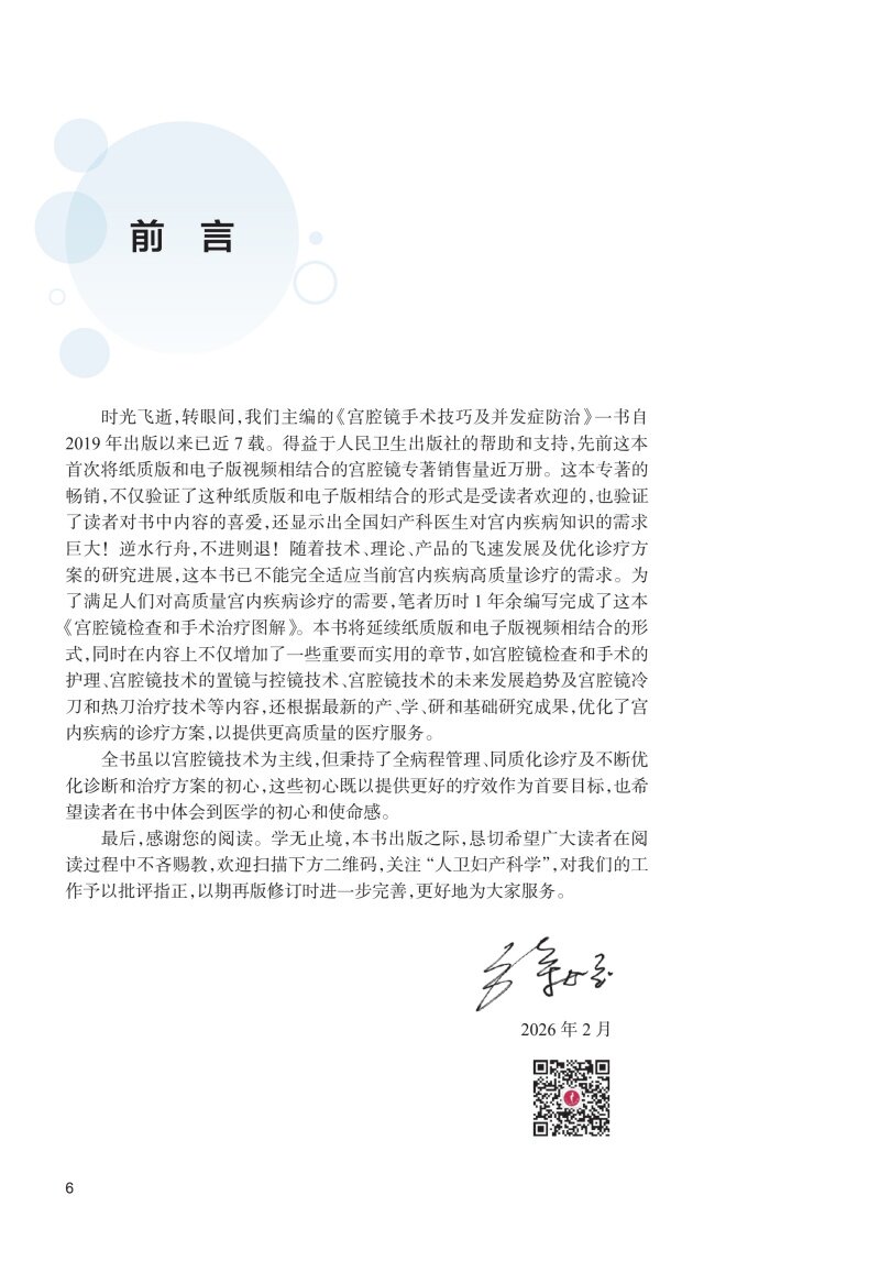 2.本书将采用纸数融合的形式,加入大量宫腔镜手术视频解读及精彩图集,展示宫腔镜手术技巧,更加有效地传授知识。