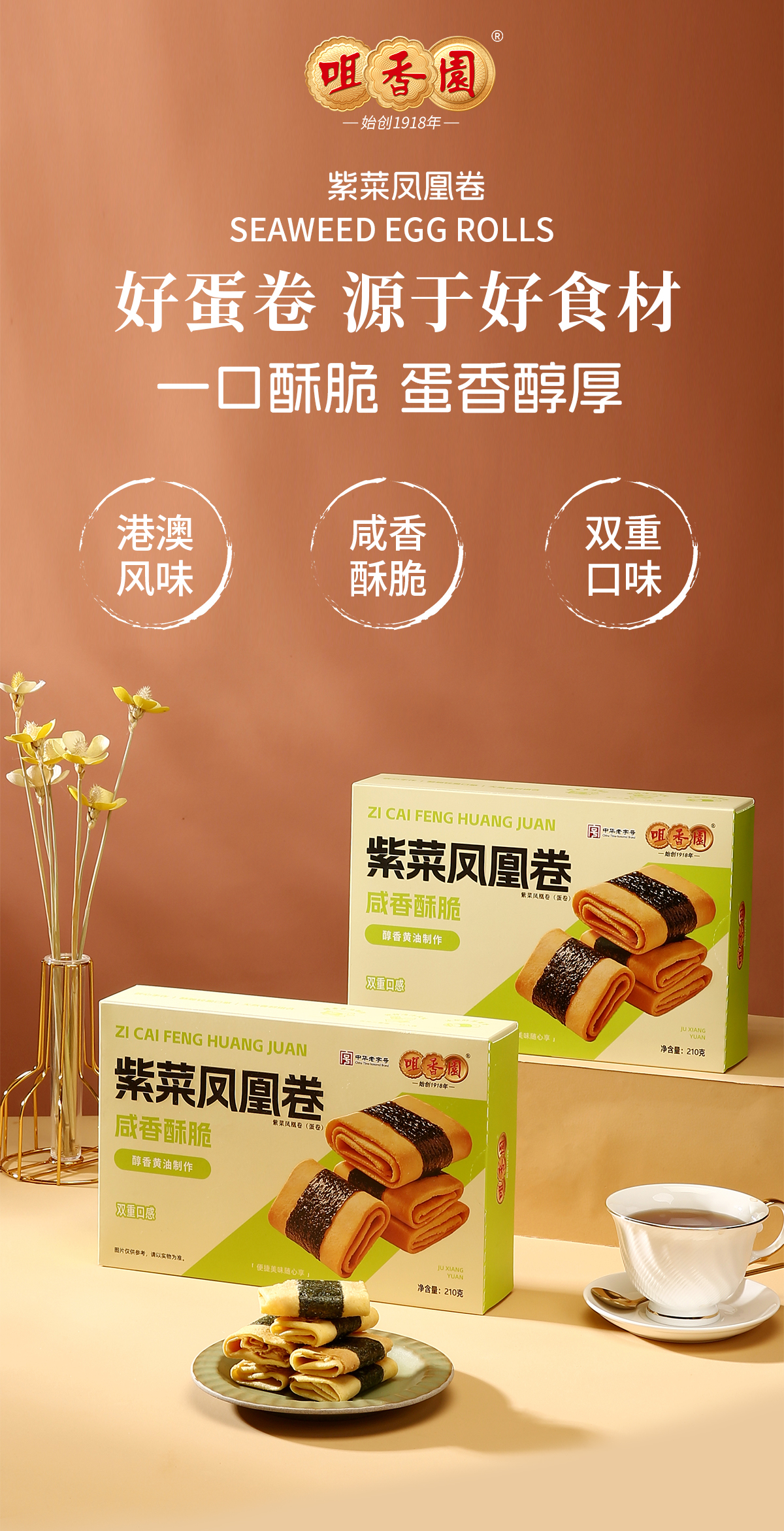 咀香园【黄油紫菜凤凰卷】210g