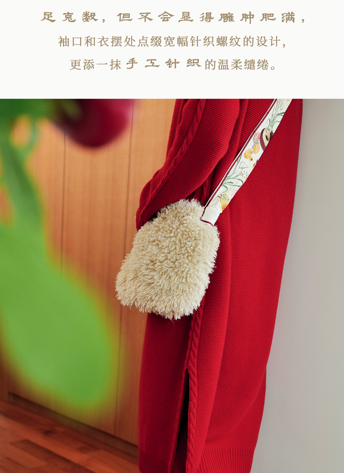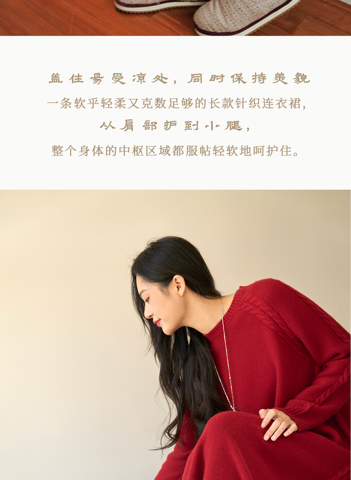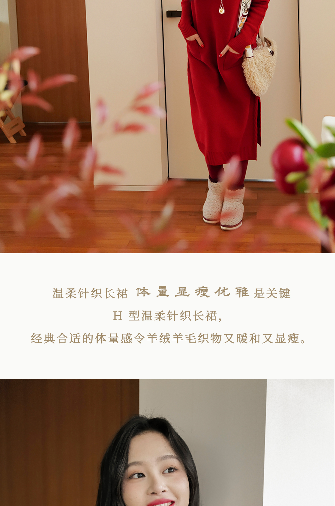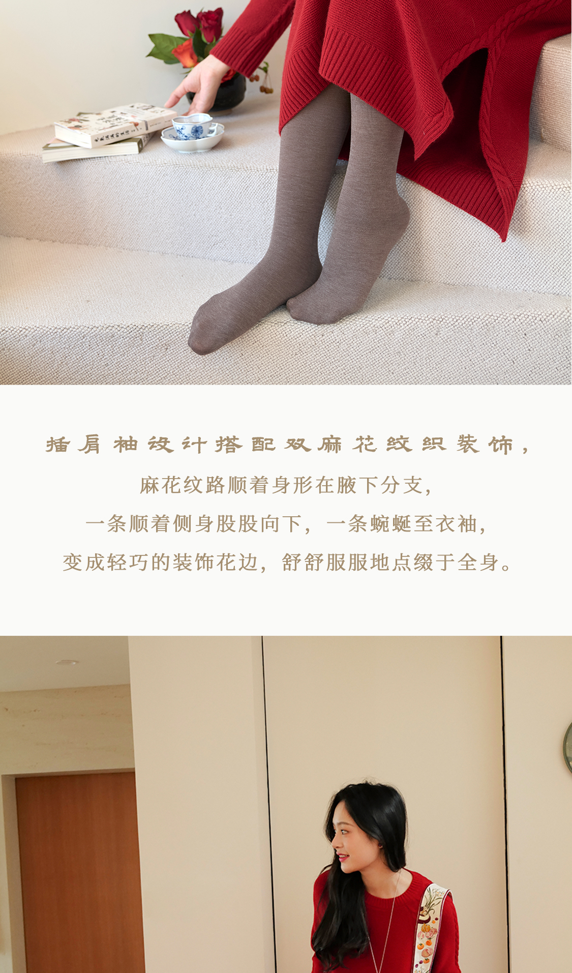 芷茸 羊绒羊毛精纺 双股绞花 圆领长款针织连衣裙 山林曦照