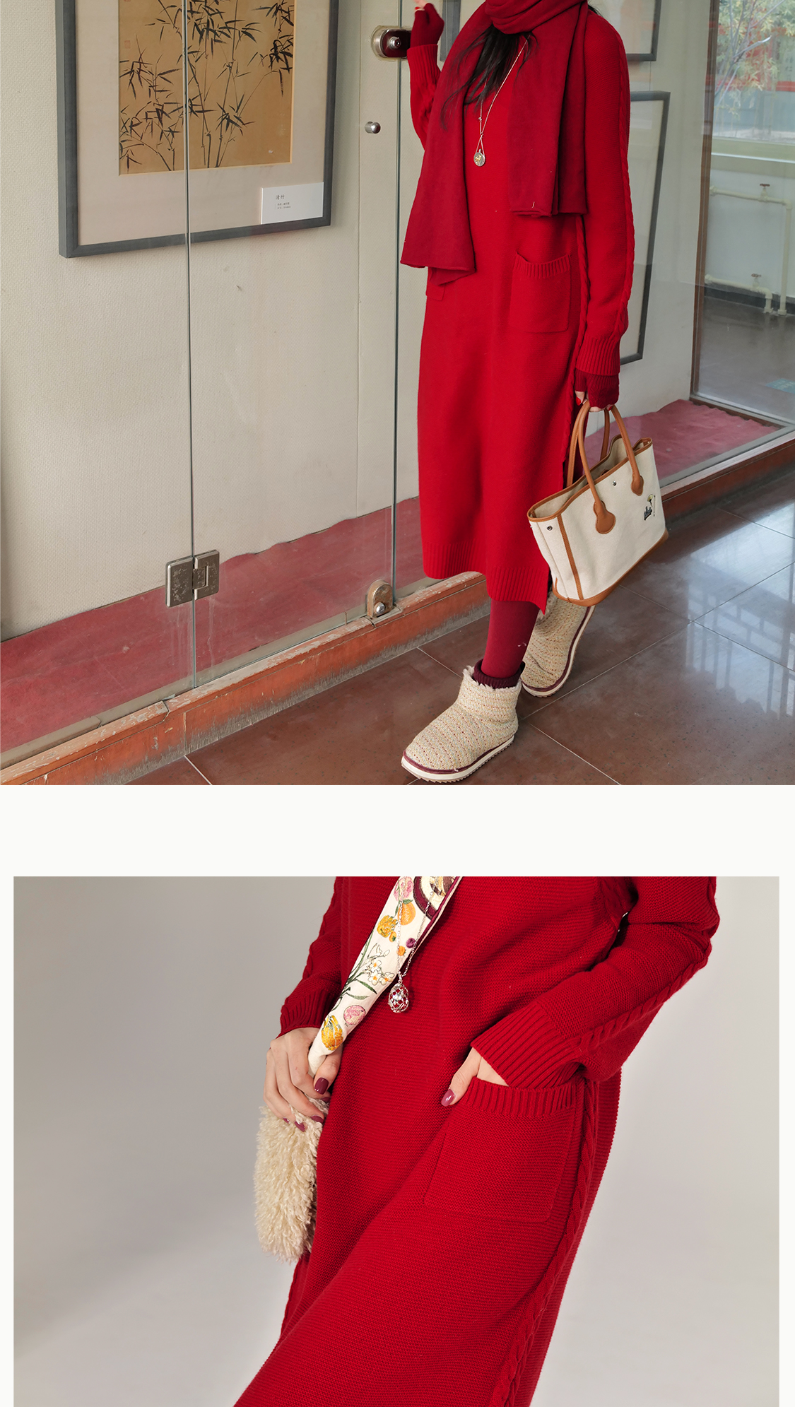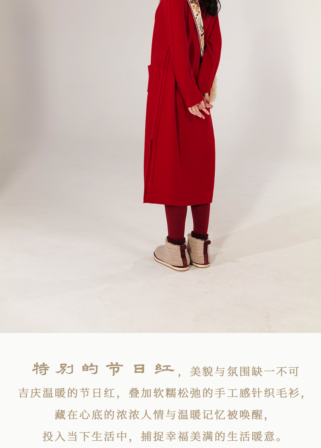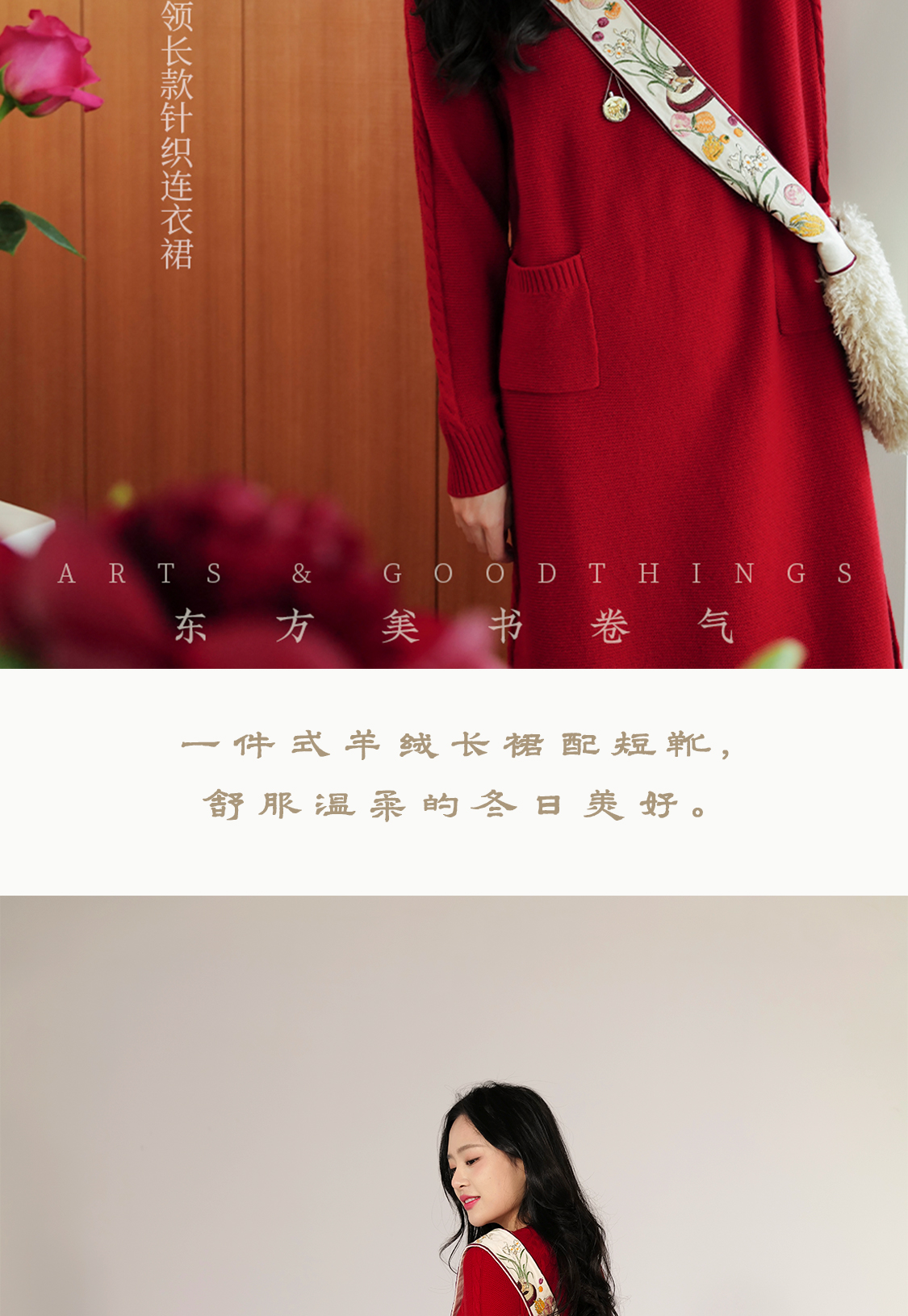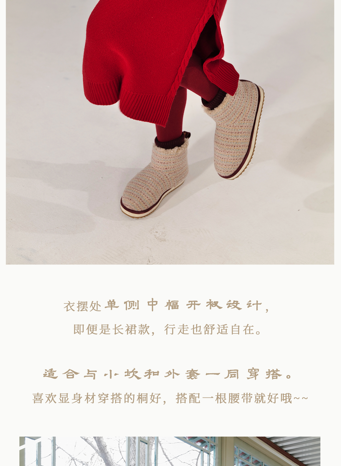 芷茸 羊绒羊毛精纺 双股绞花 圆领长款针织连衣裙 山林曦照