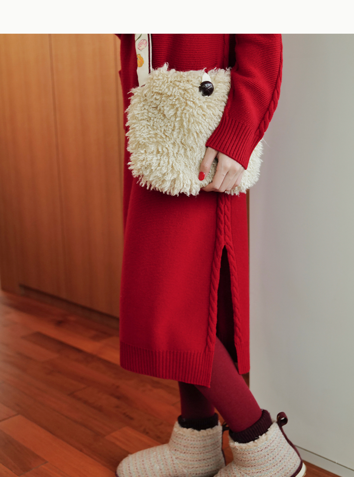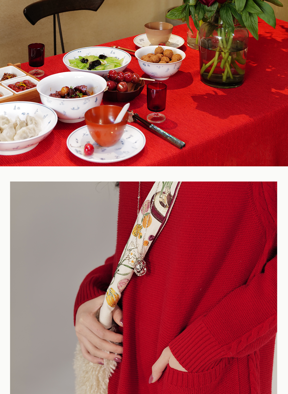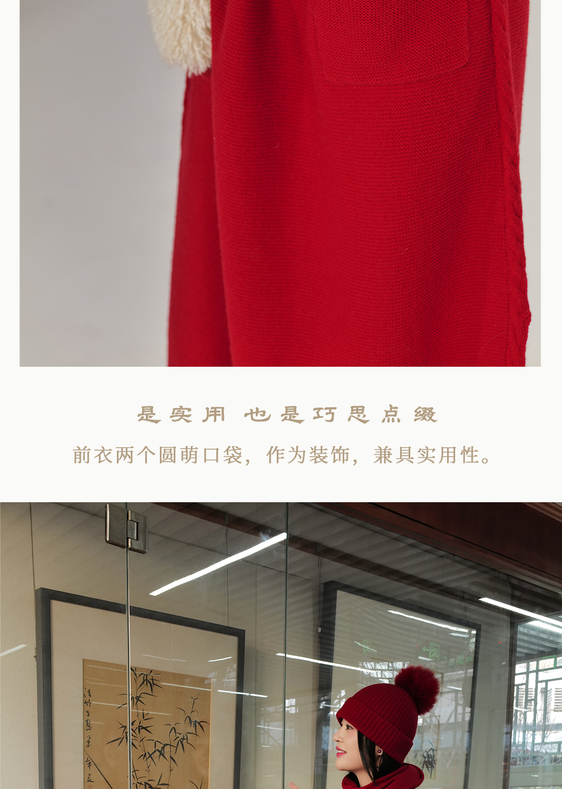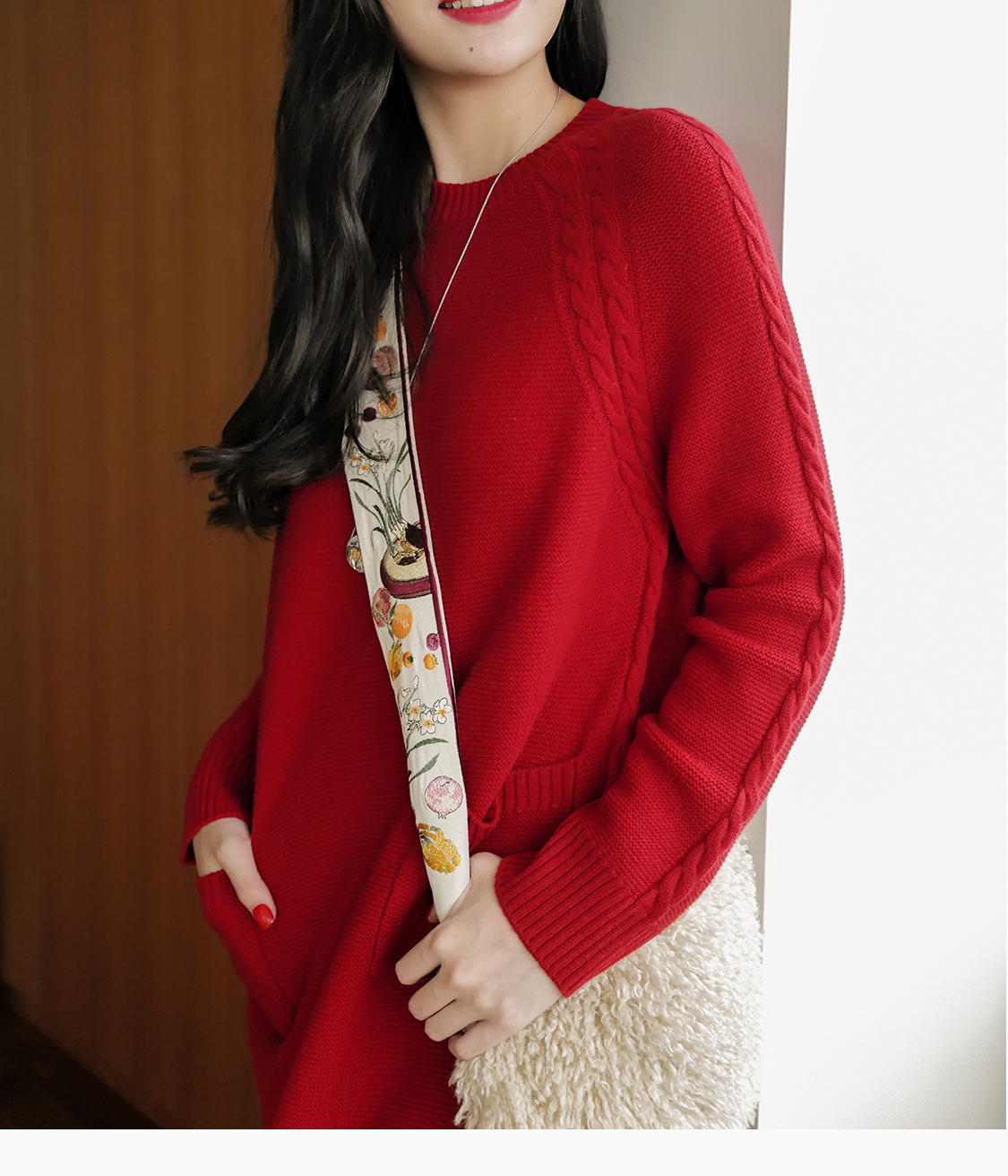 芷茸 羊绒羊毛精纺 双股绞花 圆领长款针织连衣裙 山林曦照