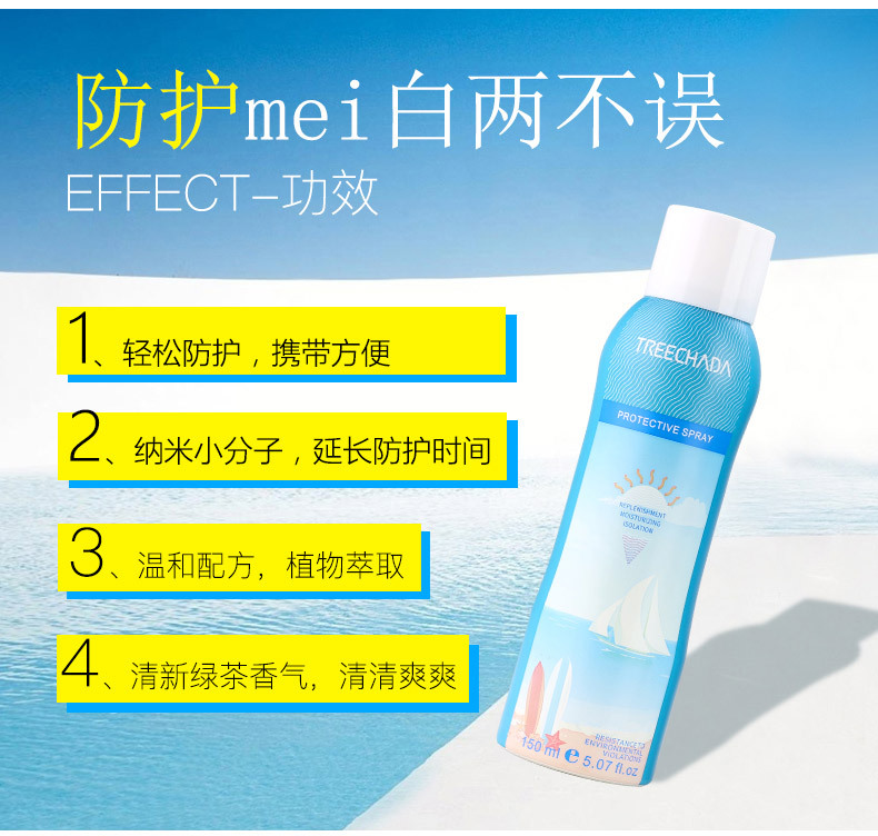 【一般贸易中文标】泰国TREECHADA防护喷雾150ml 学生保湿补水防水清爽