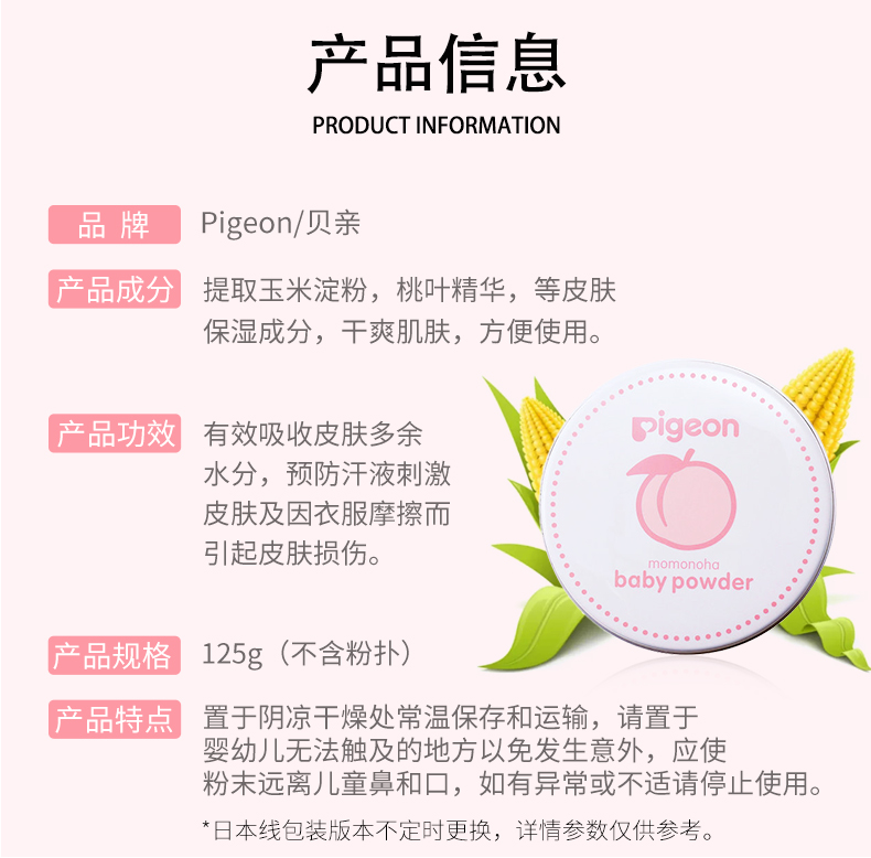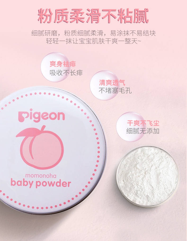 【日本】进口贝亲Pigeon桃子精华去痱防痱子粉125g