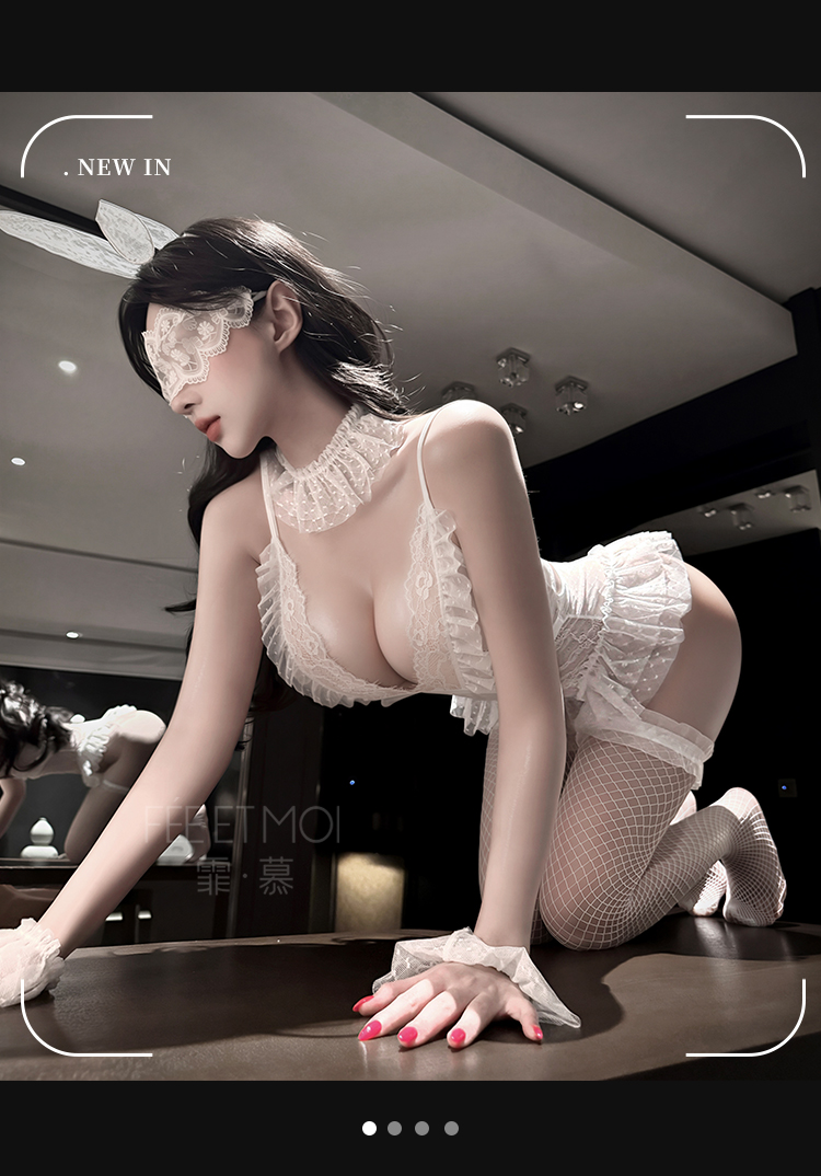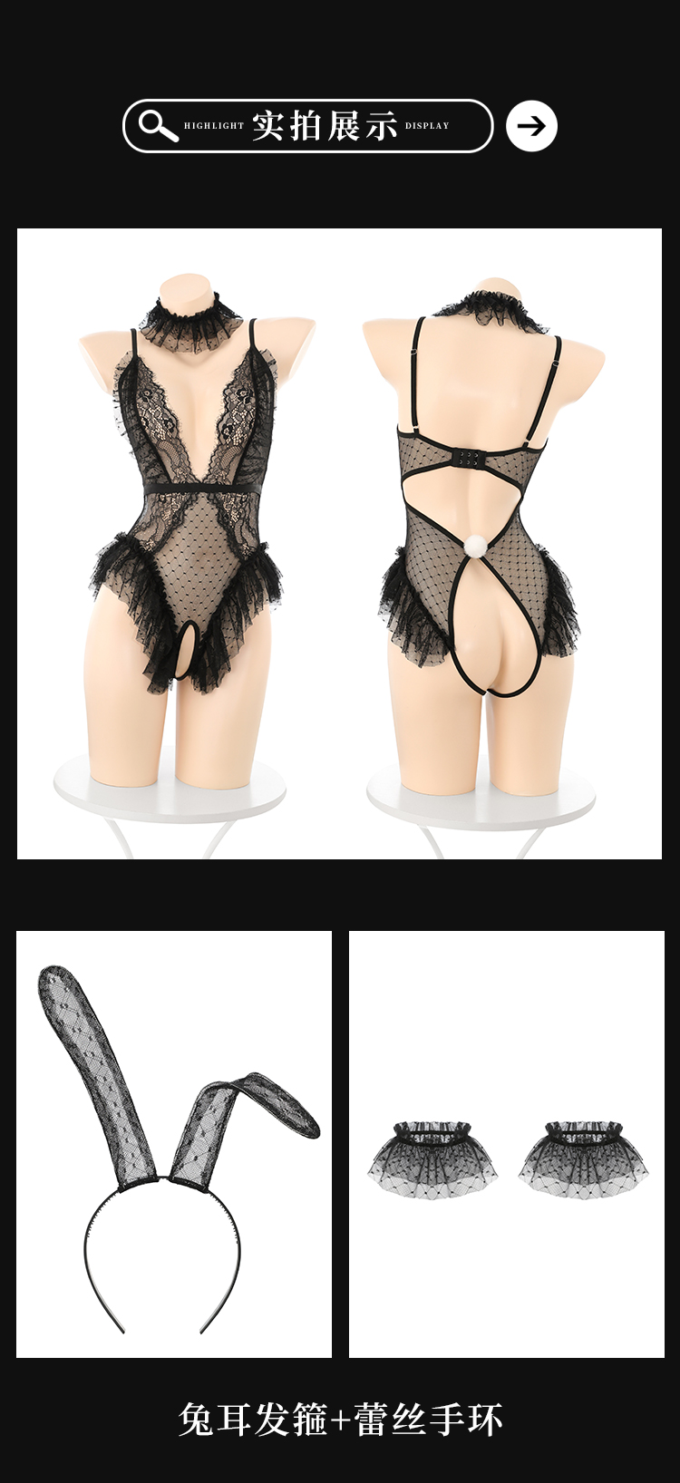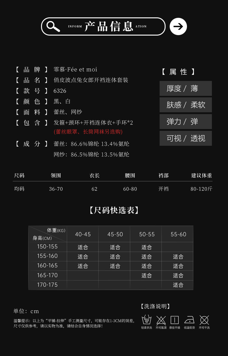 霏慕 俏皮波点兔女郎开裆连体套装6326