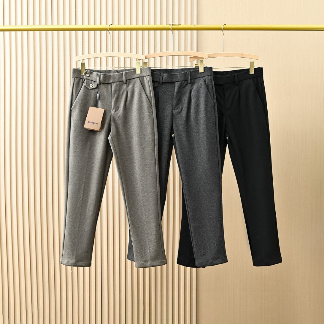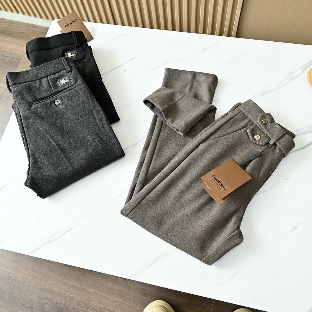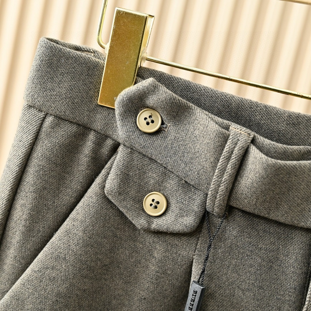 Burberry/巴宝莉2025秋季男士毛呢磨毛商务休闲西裤