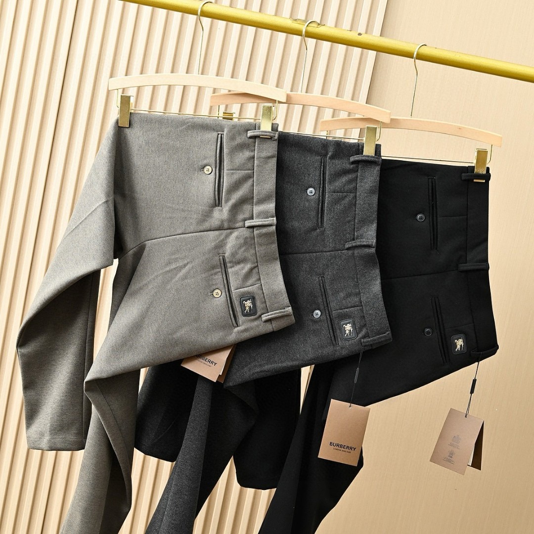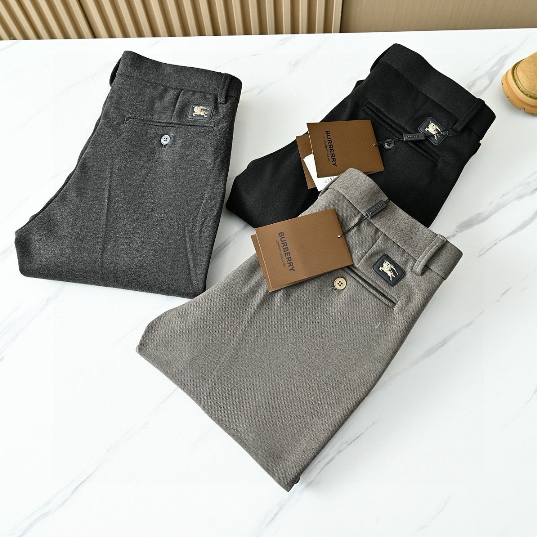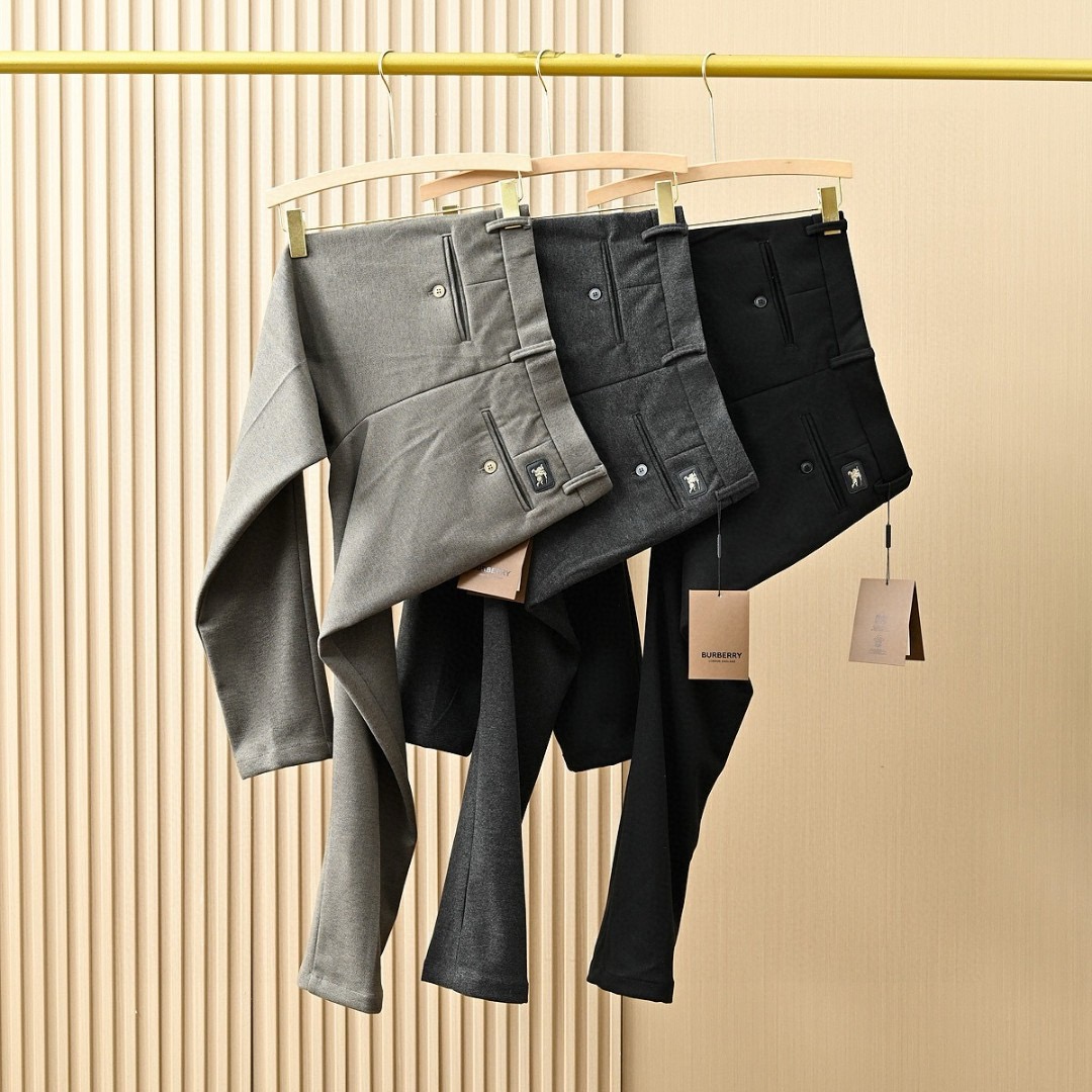 Burberry/巴宝莉2025秋季男士毛呢磨毛商务休闲西裤