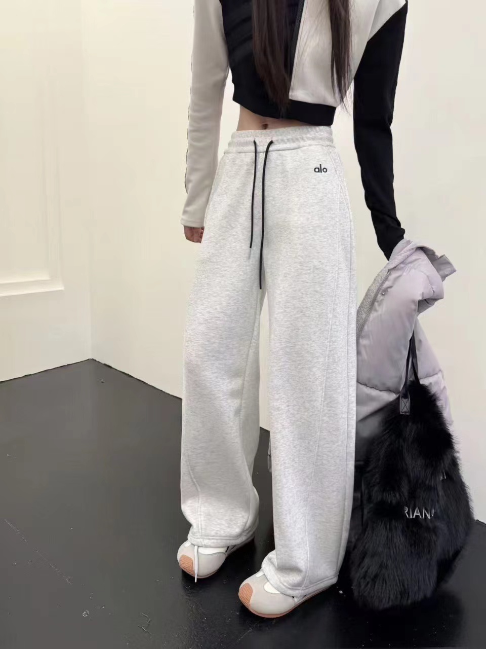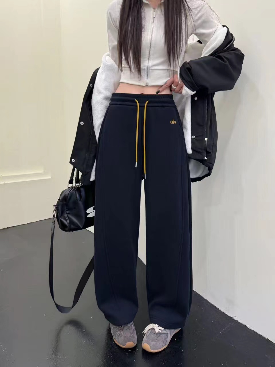 裤型是宽松的阔腿设计,带有抽绳腰头,舒适且具时尚感,裤身有精美的字母绣标识,细节感满满。加厚奥粒绒材质保暖性较好,适合秋冬季节穿着,搭配性强,可搭修身内搭等多种风格的上衣组合,无论是日常出街还是休闲通勤都很合适。