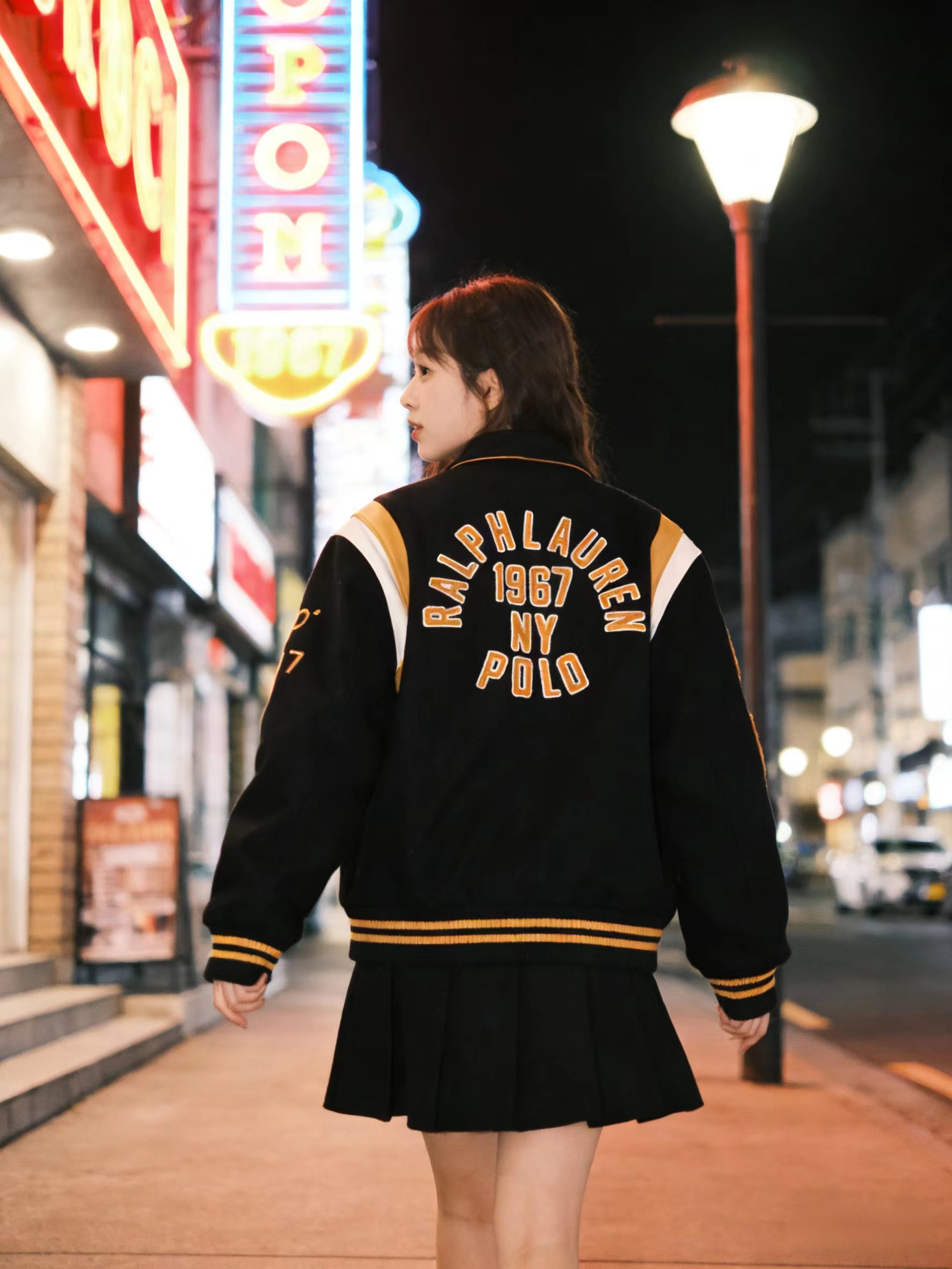 秀款棒球服外套男女同款 50%羊毛的温润筋骨,遇上50%聚酯纤维的挺括张力,经过特殊定织,织出独属于它的肌理叙事。更有ji将解锁的绿色配色版本,更以繁复工艺,静候登场。