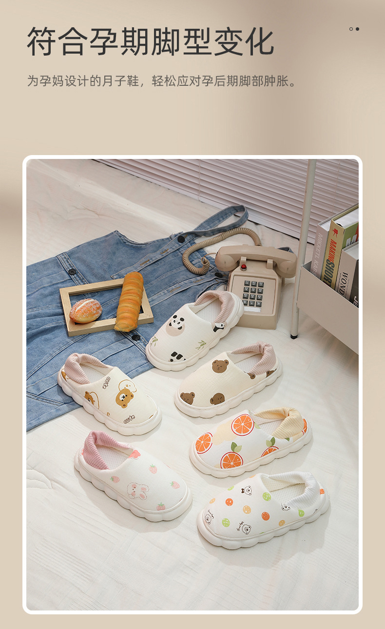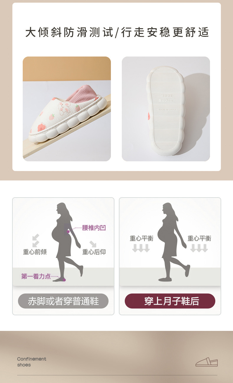 【孕婴师推荐❗️月子产妇四季拖鞋】静音防滑防风「为孕妈而生」大倾斜防滑测试/行走安稳更舒适,包跟透气孕妇软底室内产后棉拖鞋女L