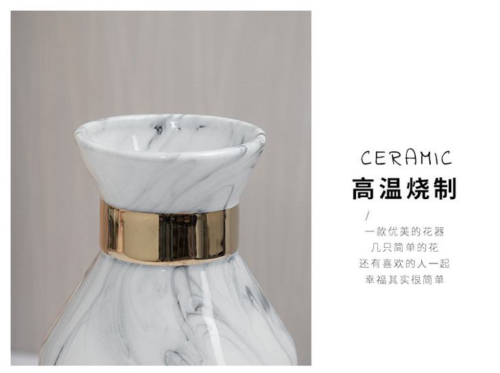 【家居摆件】*北欧ins简约花瓶摆饰 大理石纹陶瓷创意花瓶家居摆件 插花花器