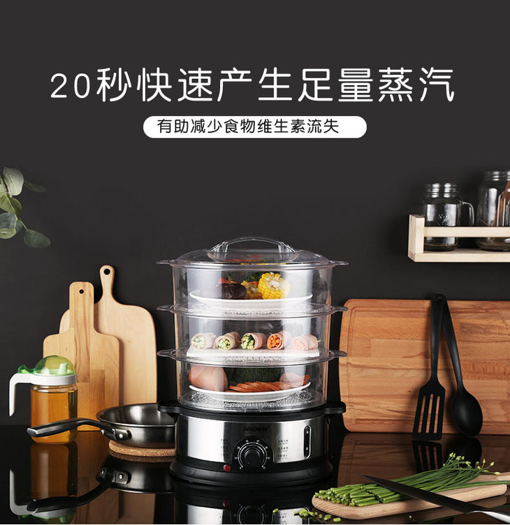 【电蒸锅】*电蒸锅多功能家用自动断电蒸汽锅3层大容量海鲜蒸笼蒸菜器
