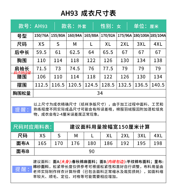 裁缝学苑AH93韩系短外套纸样外套加厚短款夹克女装打版裁剪图纸