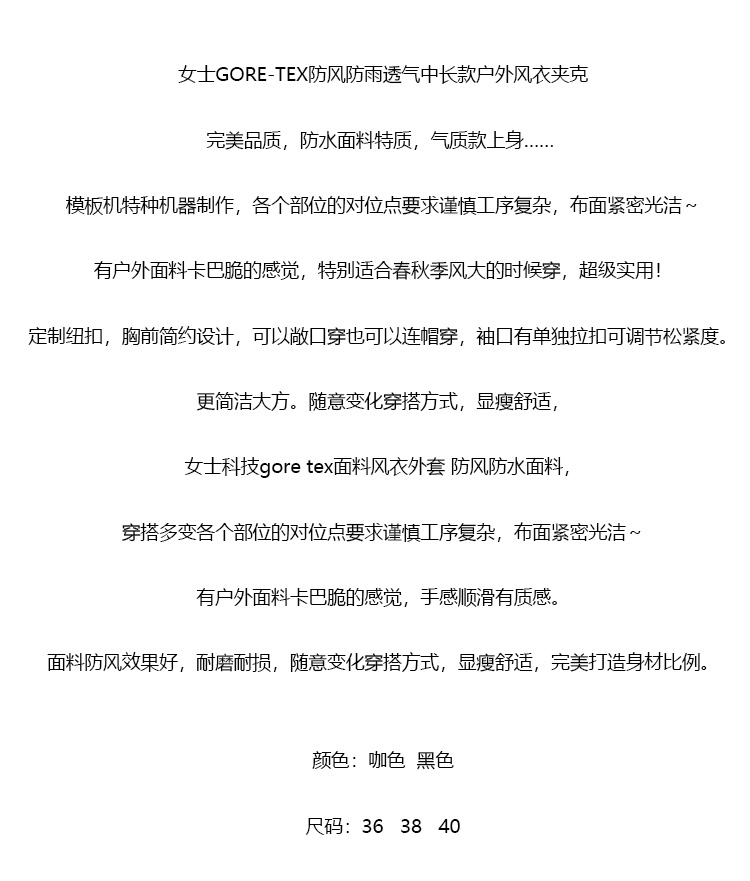 【cyz1】女士羔端GORE-TEX防风雨透气中长款户外风衣外套!!