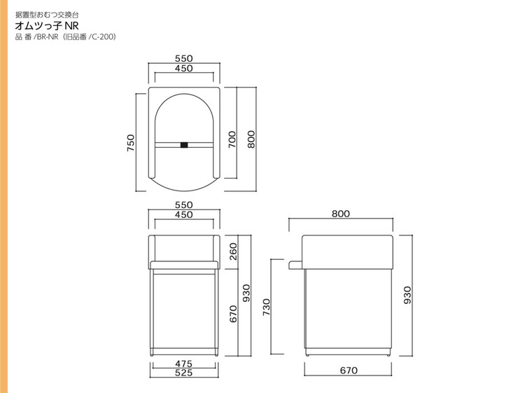 ■宽度550 mm紧凑型尿布更换支架