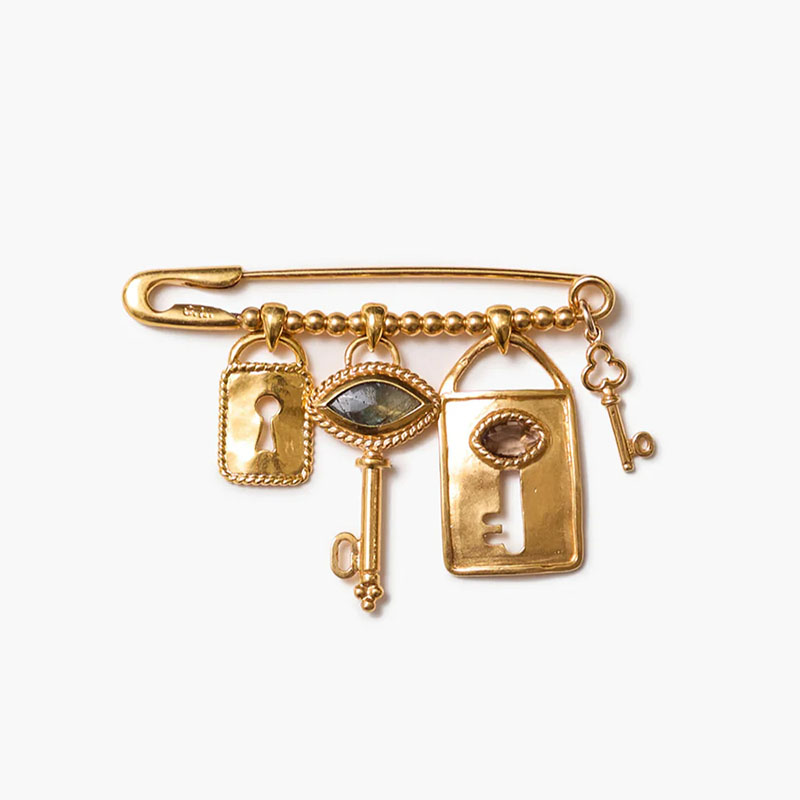 订购6周到|Chan Luu-Padlock-挂锁 拉长石 胸针[美国设计师]