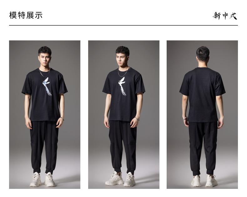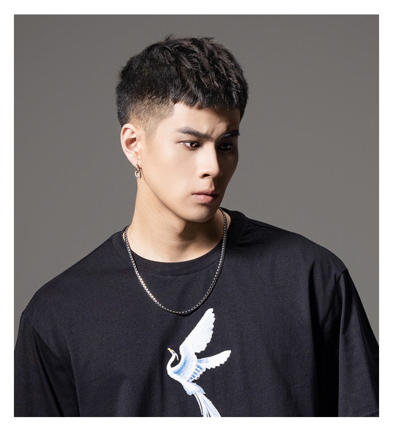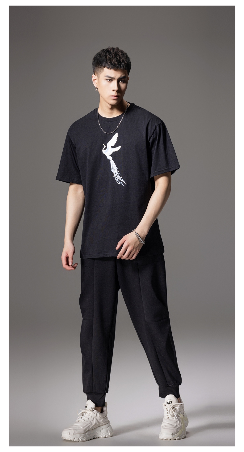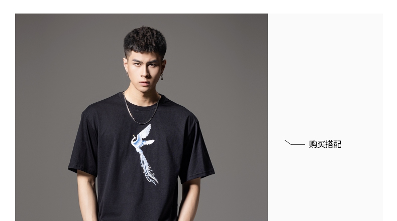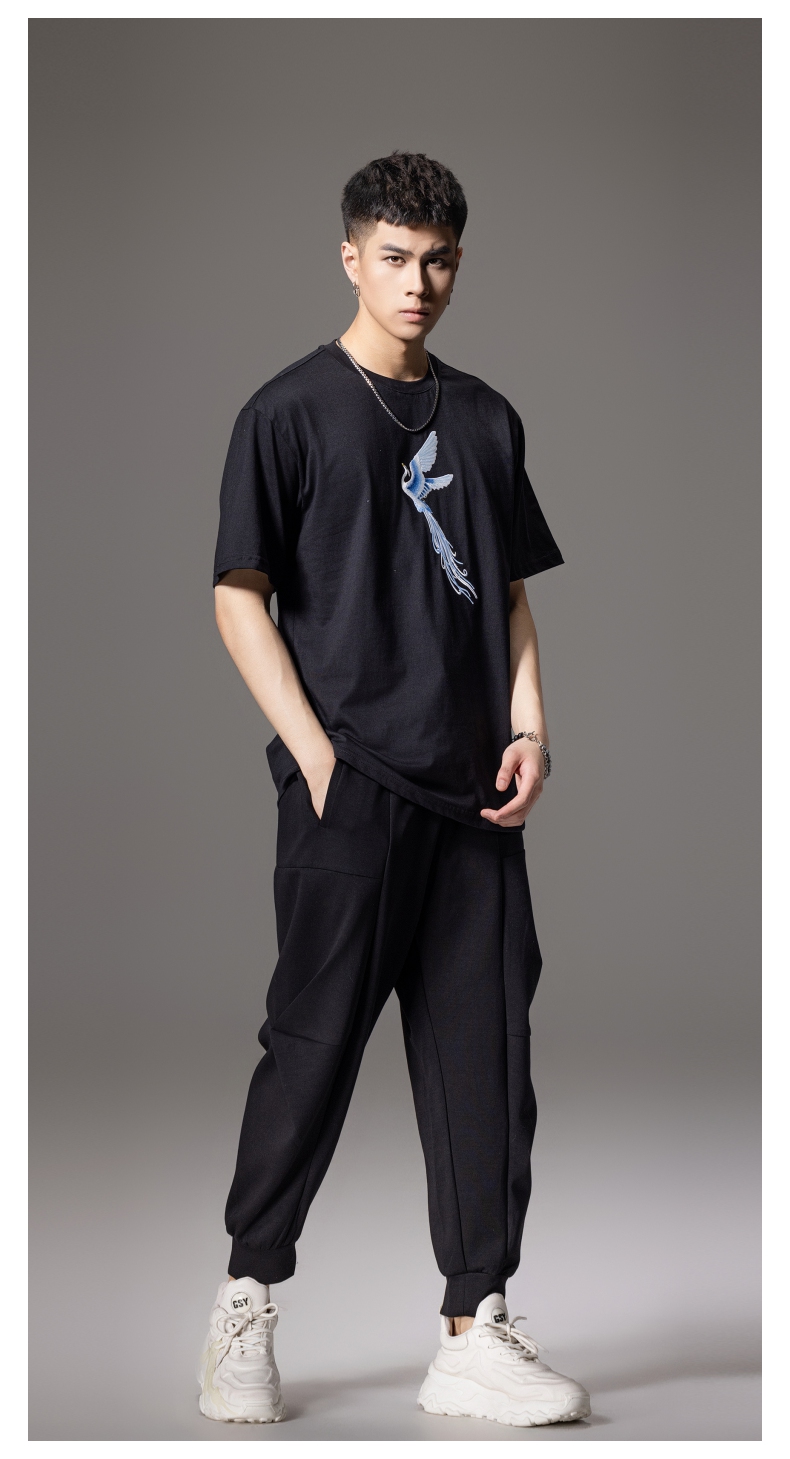 PINLI品立新中式2024夏季新款国潮飞鸟短袖T恤男士贴布绣休闲上衣BG242111058
