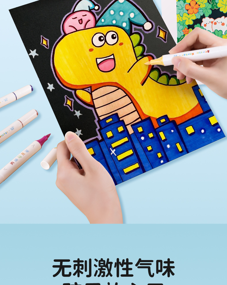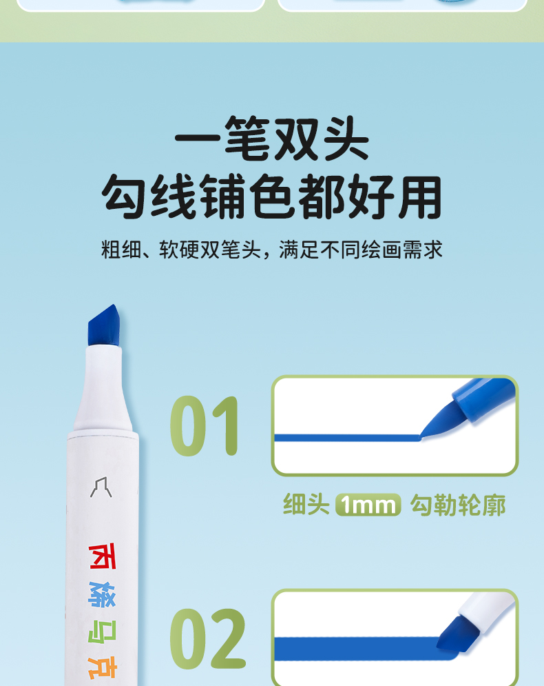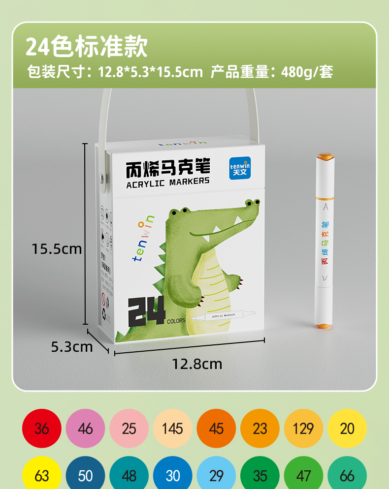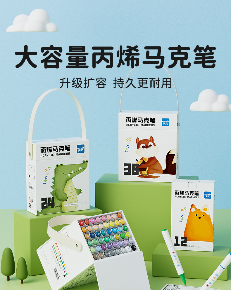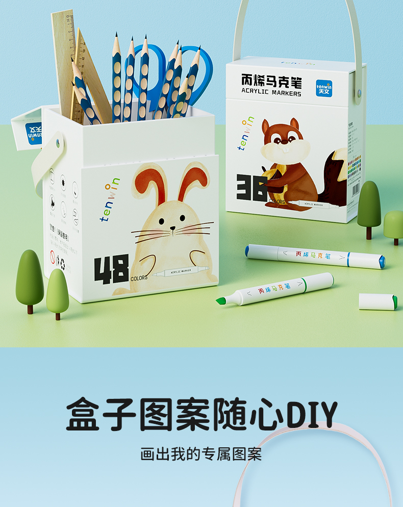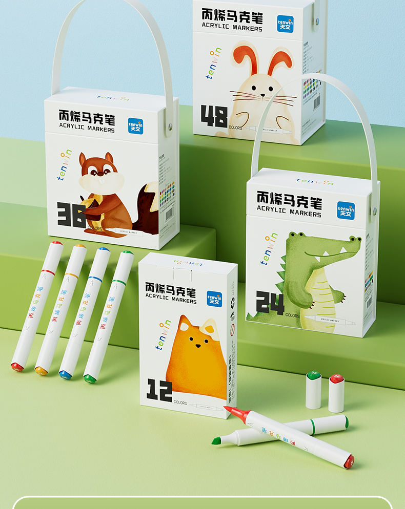 天文丙烯马克笔小学生专用儿童美术DIY彩色水性绘画笔双头水彩笔24色48色可涂鸦不透色速干可叠色画画笔