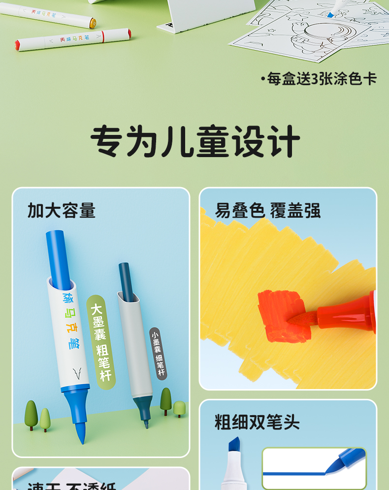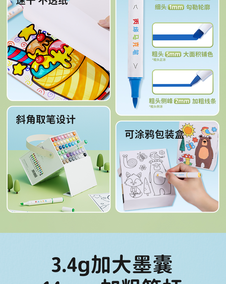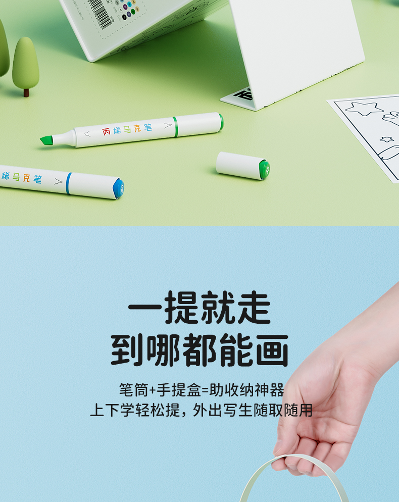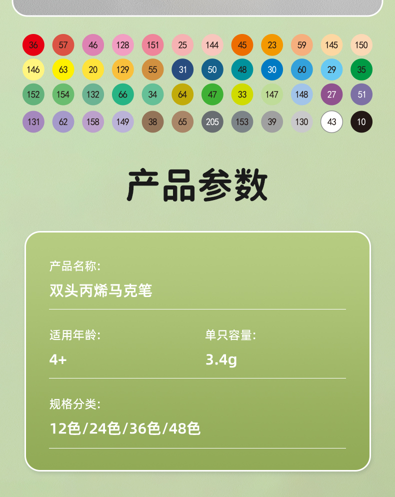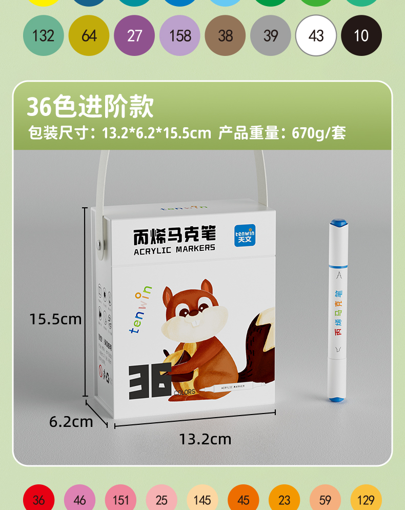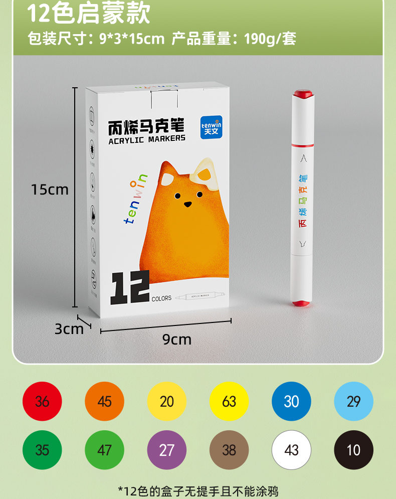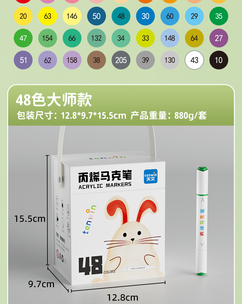 天文丙烯马克笔小学生专用儿童美术DIY彩色水性绘画笔双头水彩笔24色48色可涂鸦不透色速干可叠色画画笔