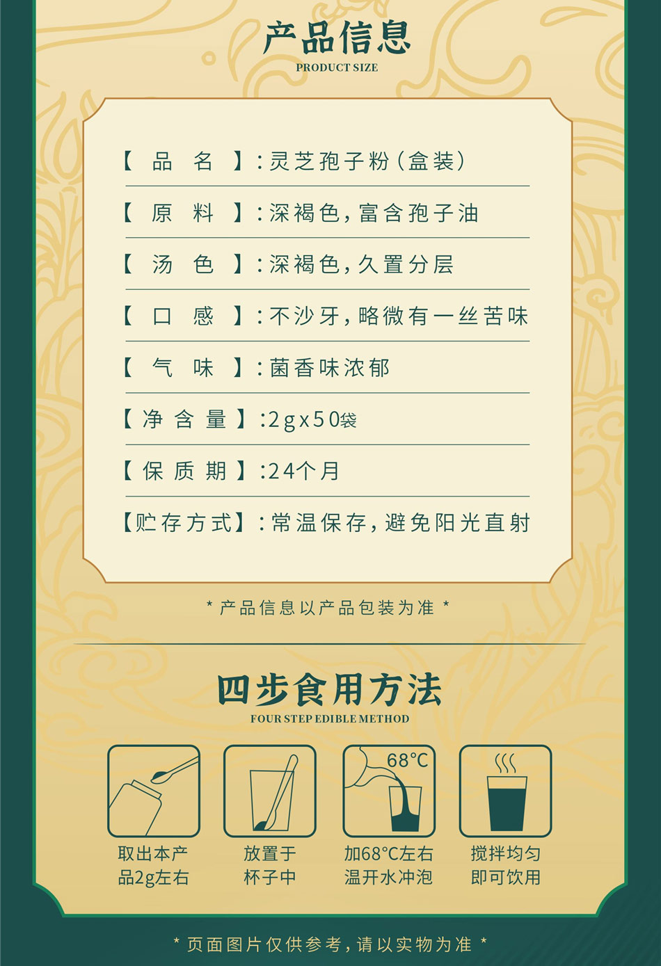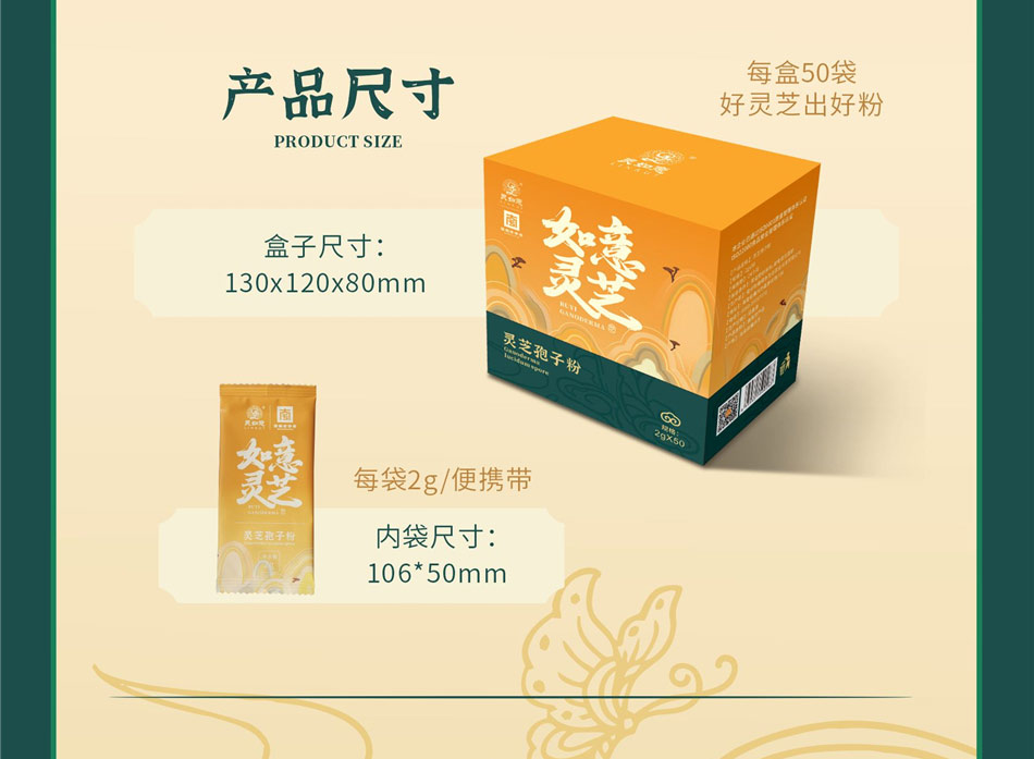 新品上市-灵如意菌草灵芝孢子粉单盒装2g*50袋/盒 高品质灵芝三萜灵芝多糖成分高