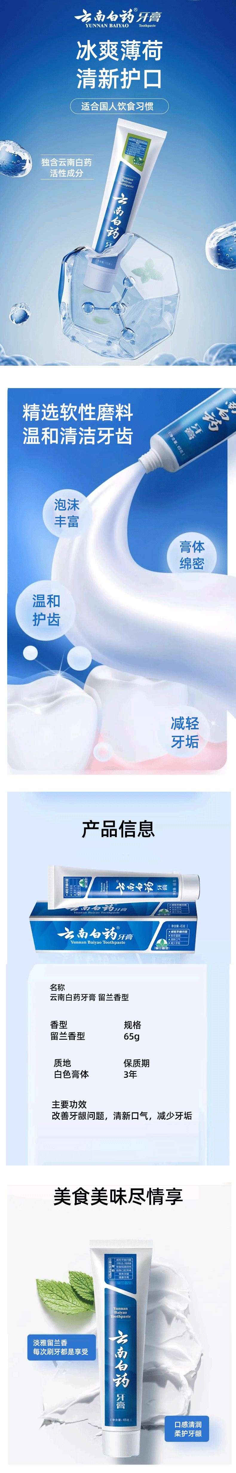 云南白药牙膏-留兰65g【21003370】