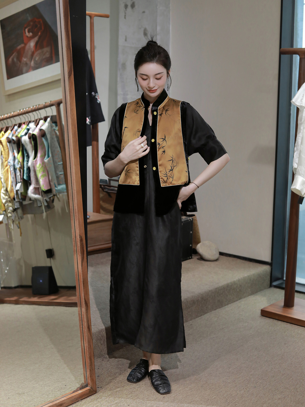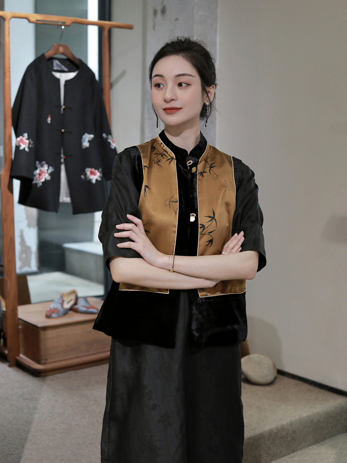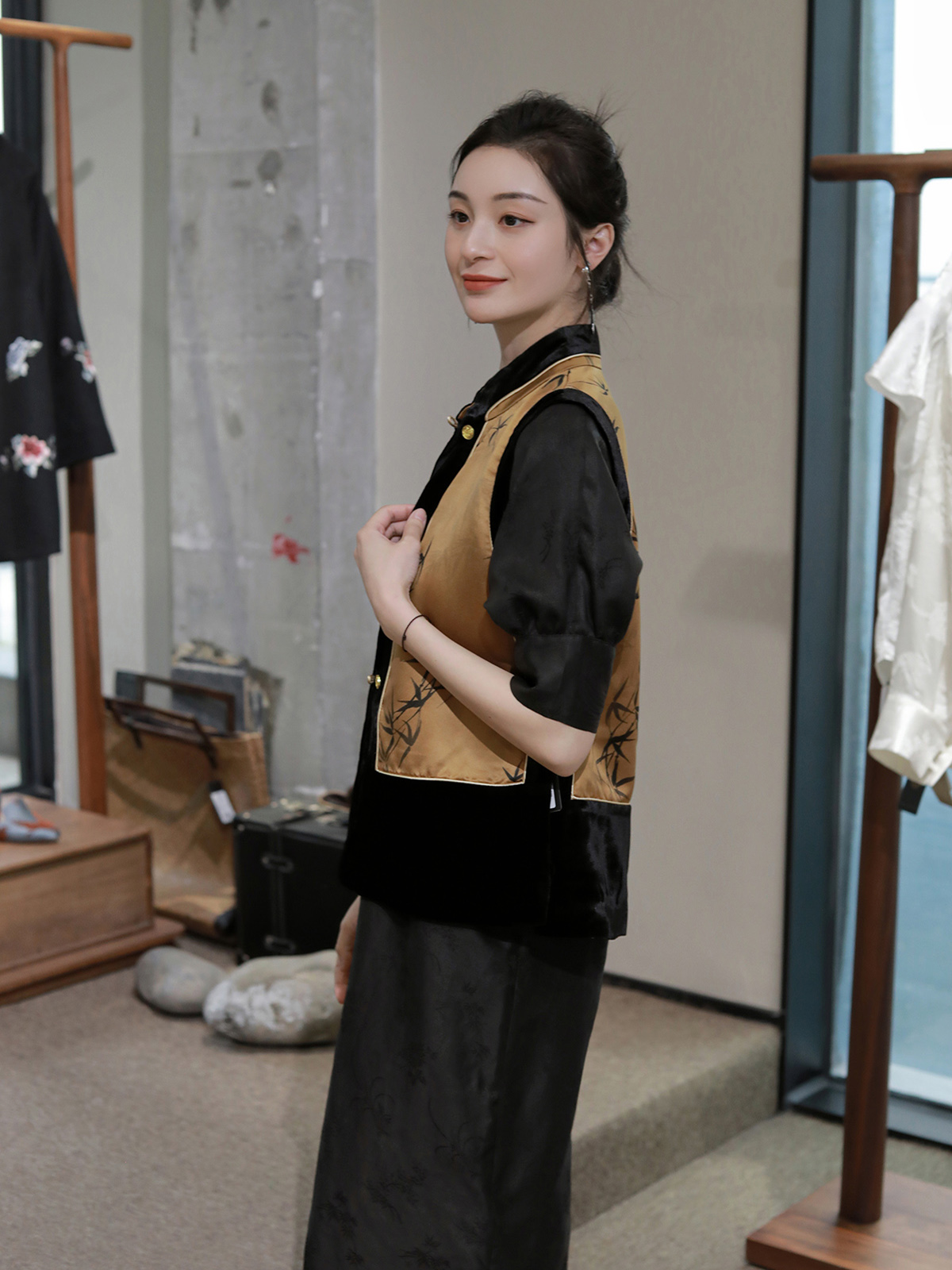 盛唐牡丹 |皮子重缎香云纱配黑丝绒马甲