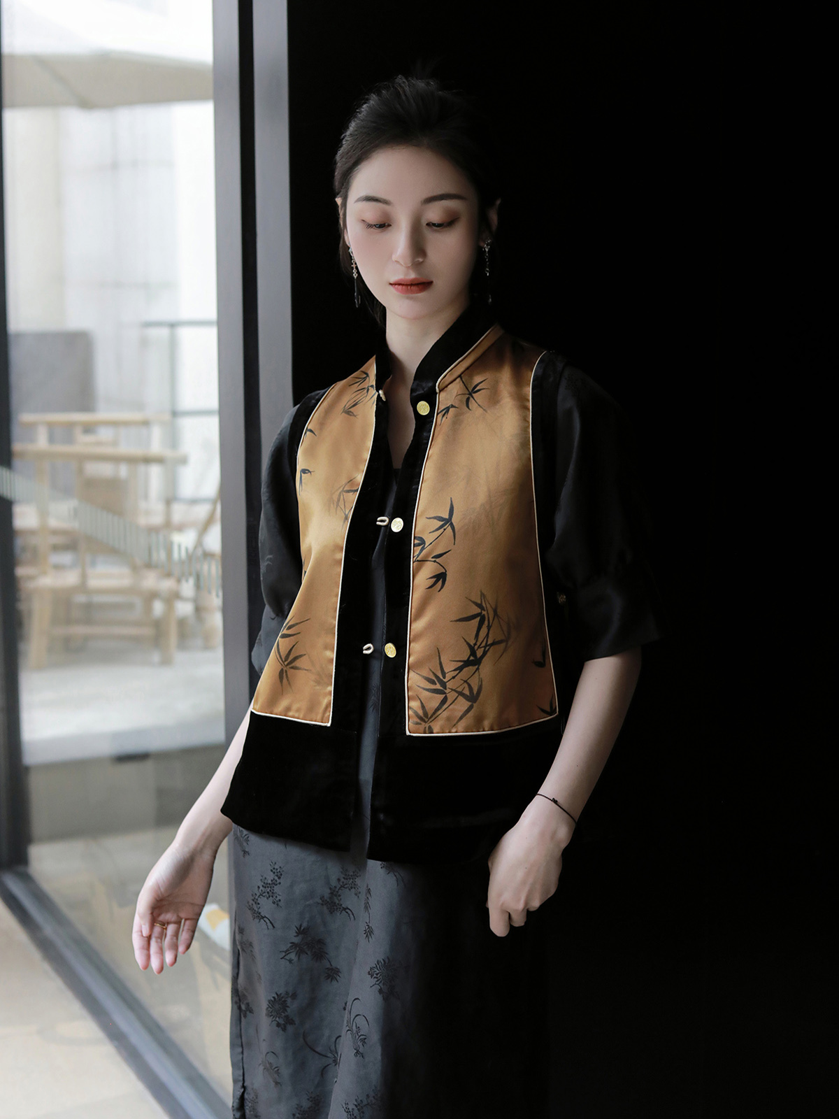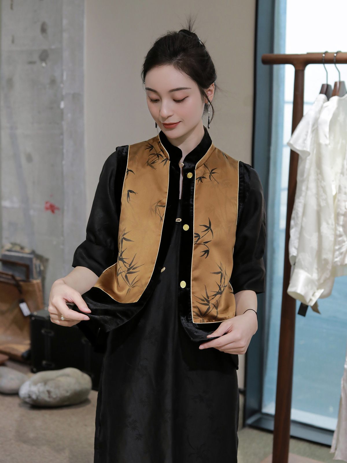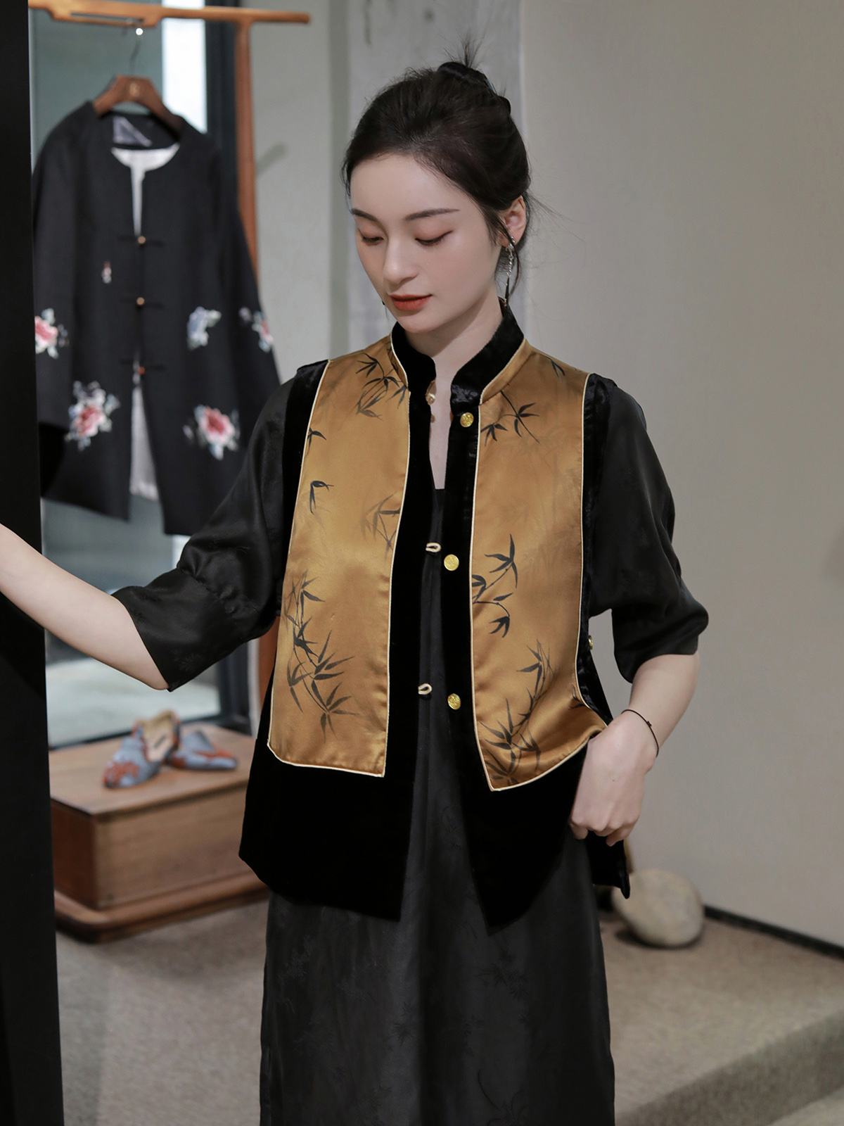 盛唐牡丹 |皮子重缎香云纱配黑丝绒马甲