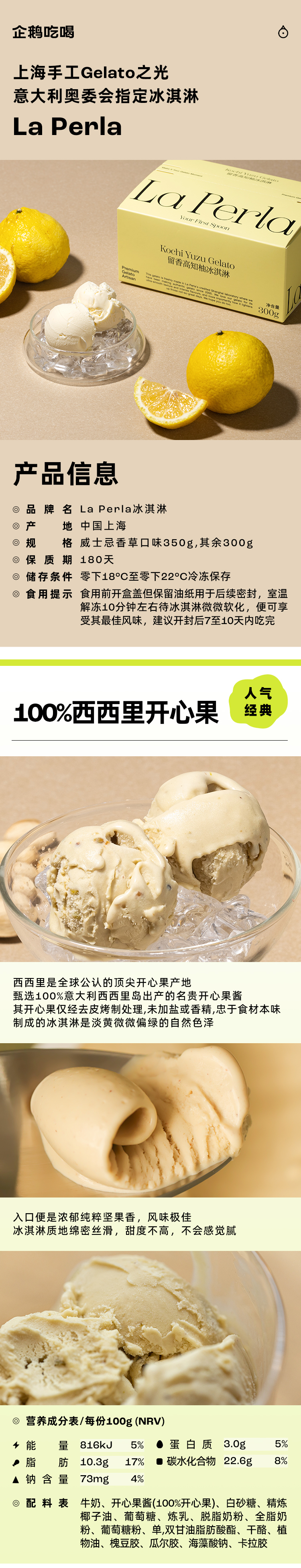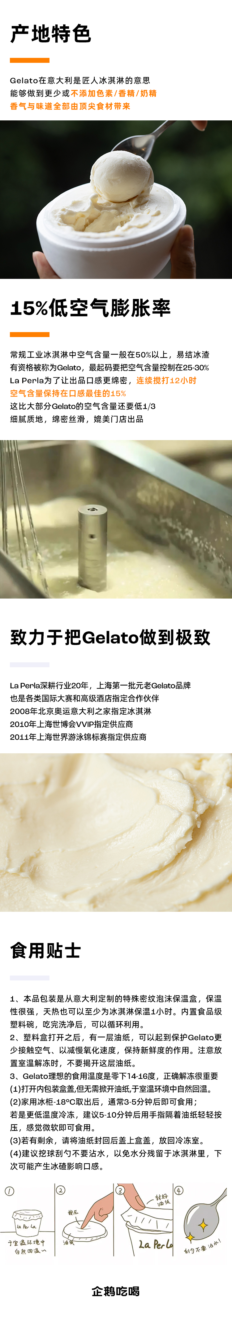 企鹅市集|La Perla意式gelato手工冰淇淋 开心果/薄荷巧克力/香草威士忌/高知柚等多口味