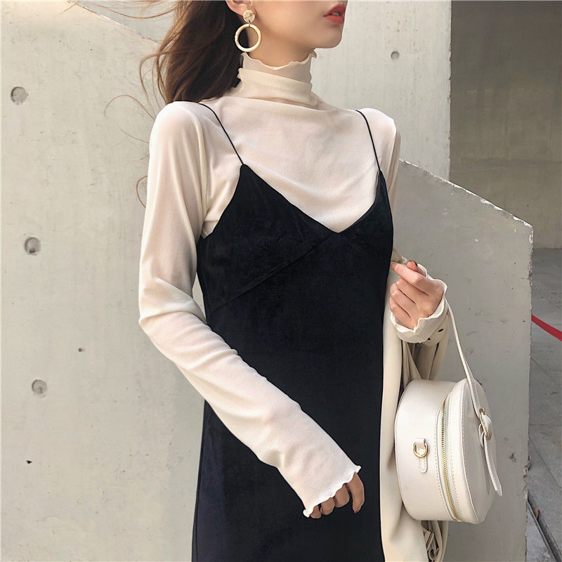 【早春爆款❗️仙仙蕾丝打底衫】超火网红ins风,春季新款仙女上衣,复古高领亲肤网纱长袖,内搭洋气设计感打底衫