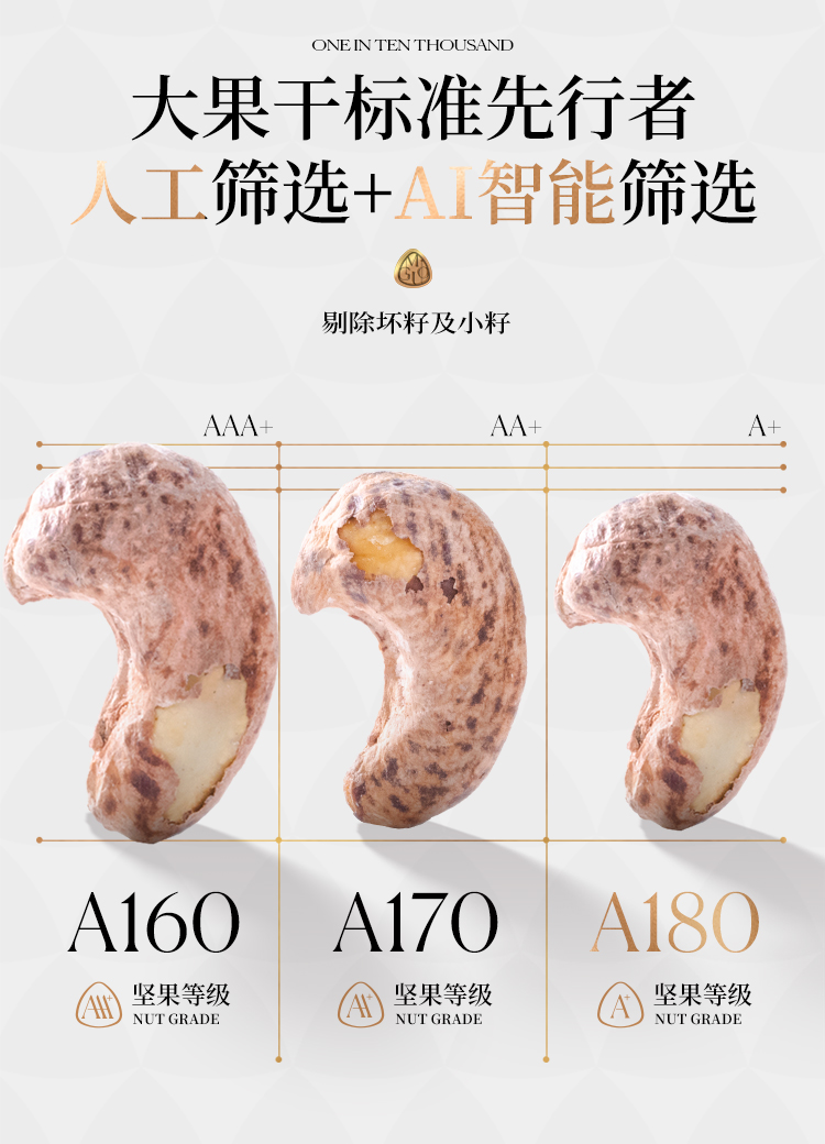 觅菓大颗粒大坚果觅果A180淡盐味干果紫衣腰果600g罐