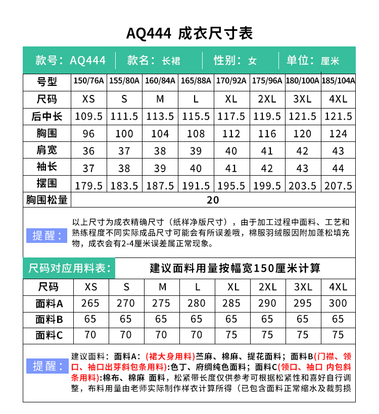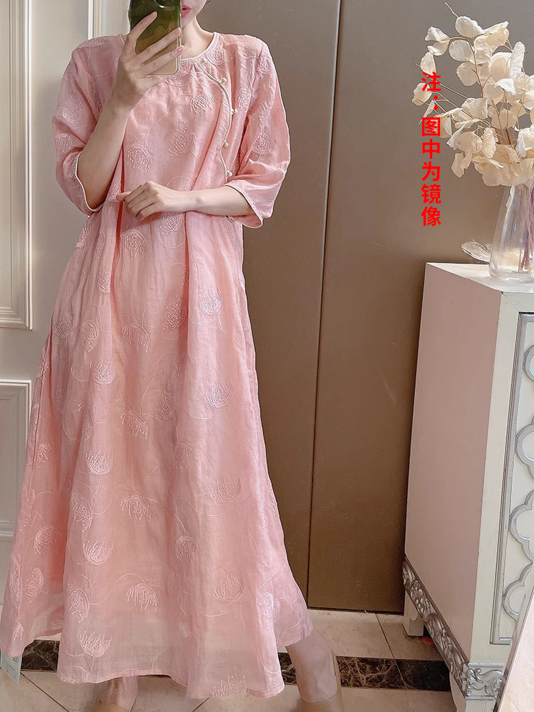裁缝学苑AQ444连衣裙纸样女装禅意盘扣中长款复古棉麻长裙子样板