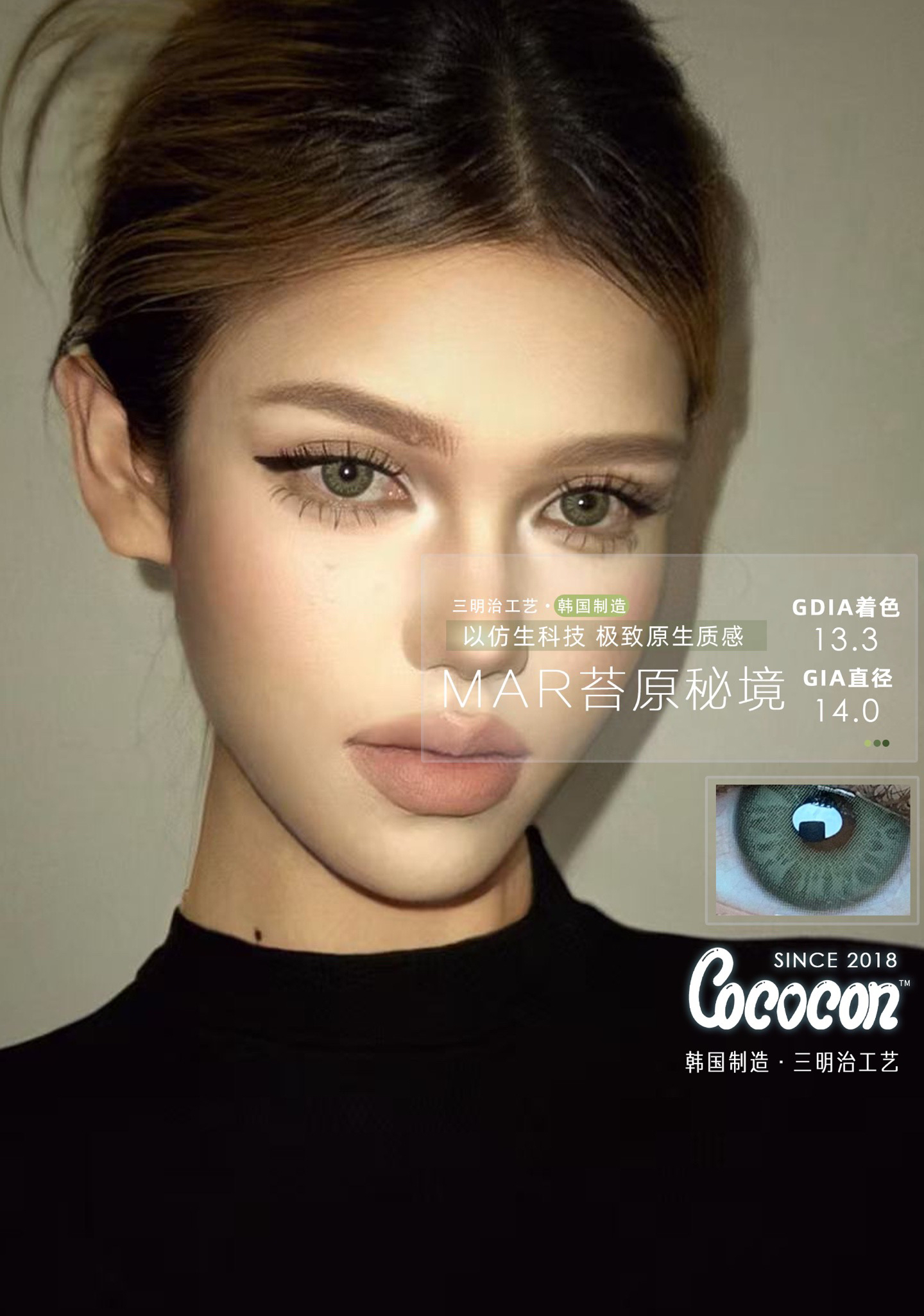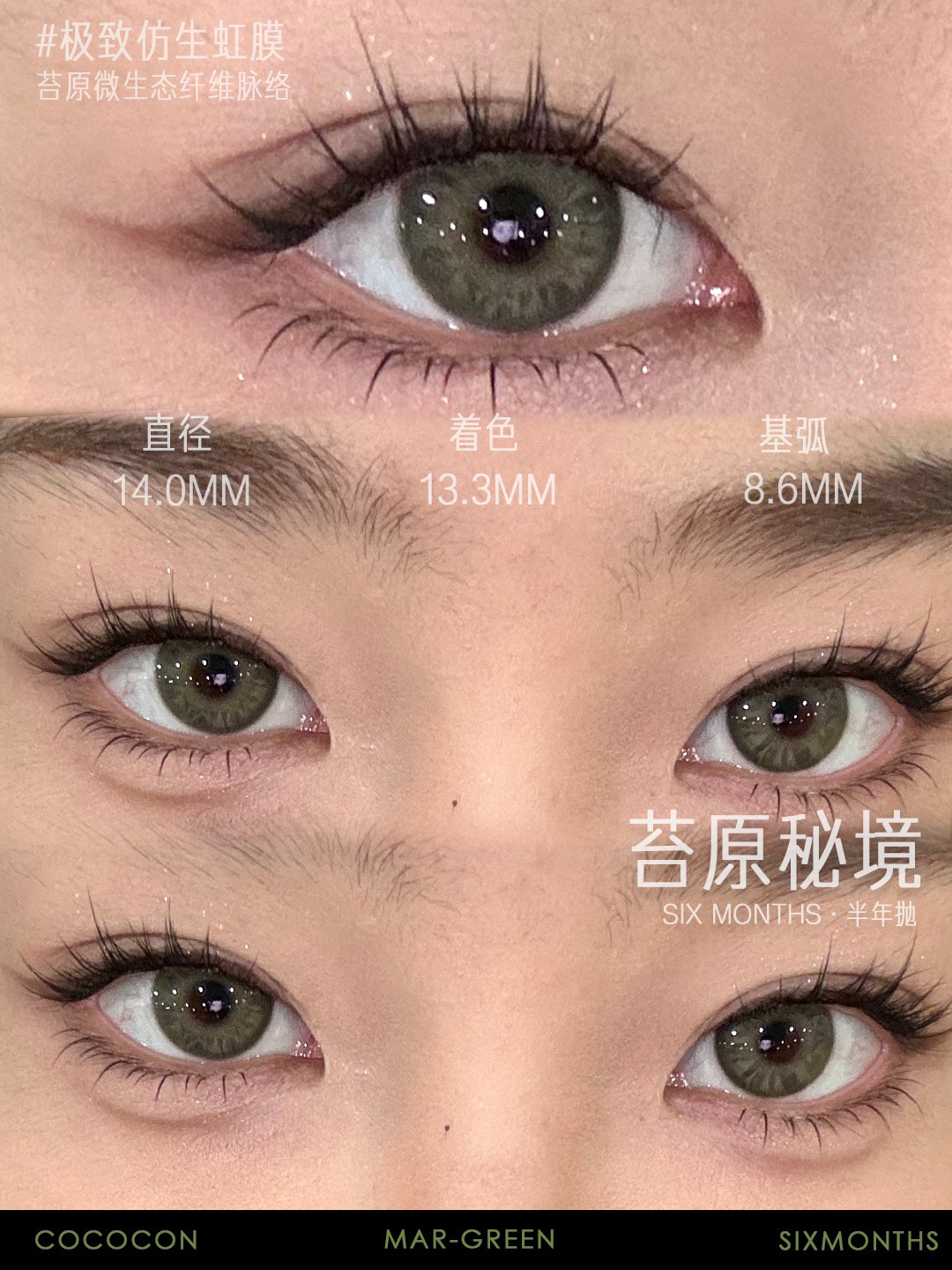 标注直径:14.0mm着色直径:13.3mm含水量:38%佩戴期限:半年型(建议6个月)可配:0-800度(无525/575)工厂:韩产ICODI含硅水凝胶