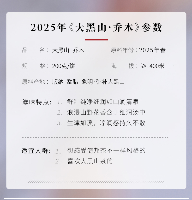 [买5送1]2025《大黑山乔木》春茶 200克/饼 生茶