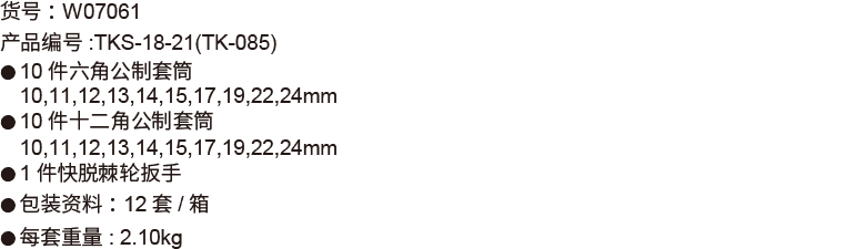 威达 12.5mm塑架套筒组套