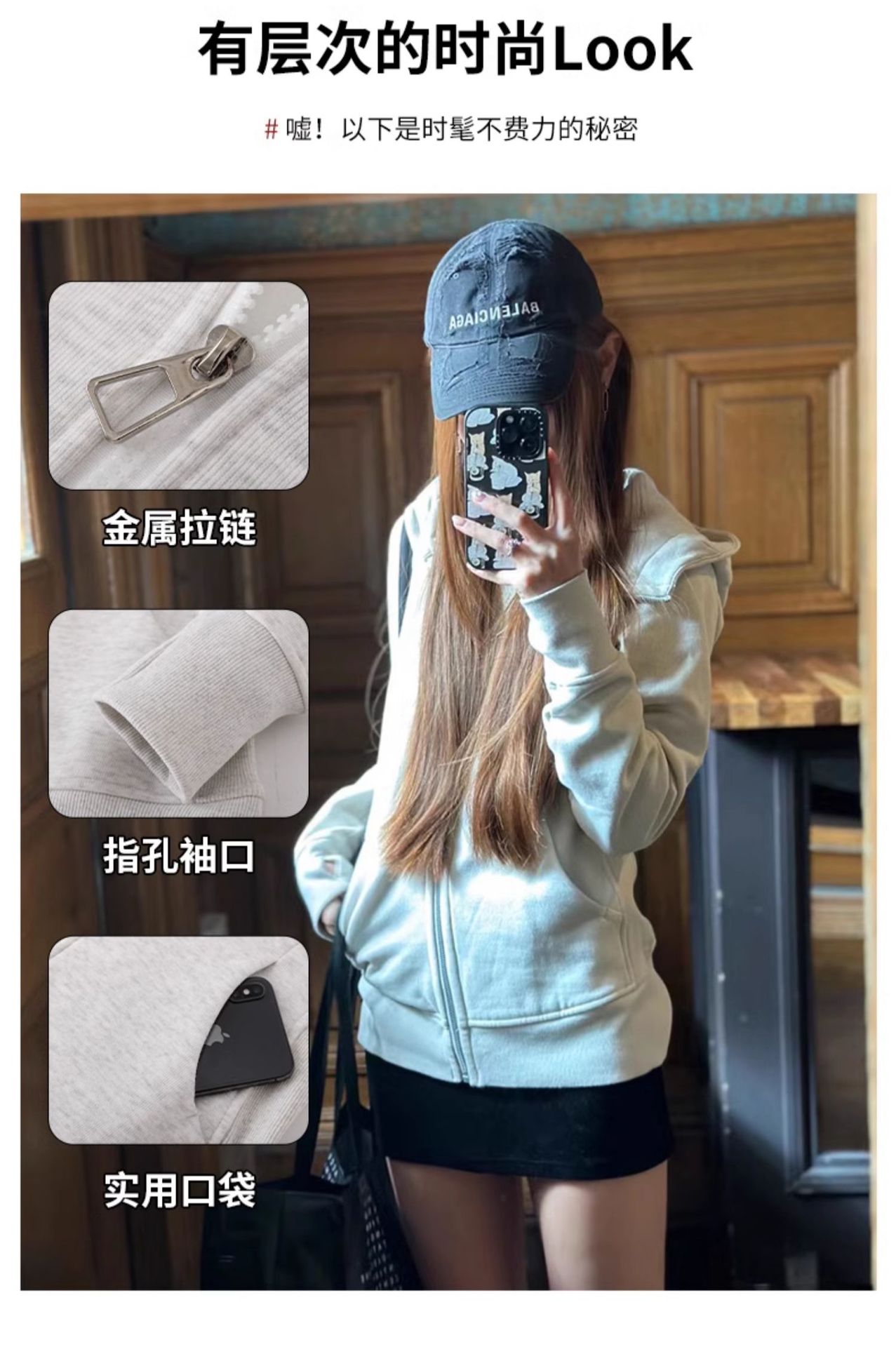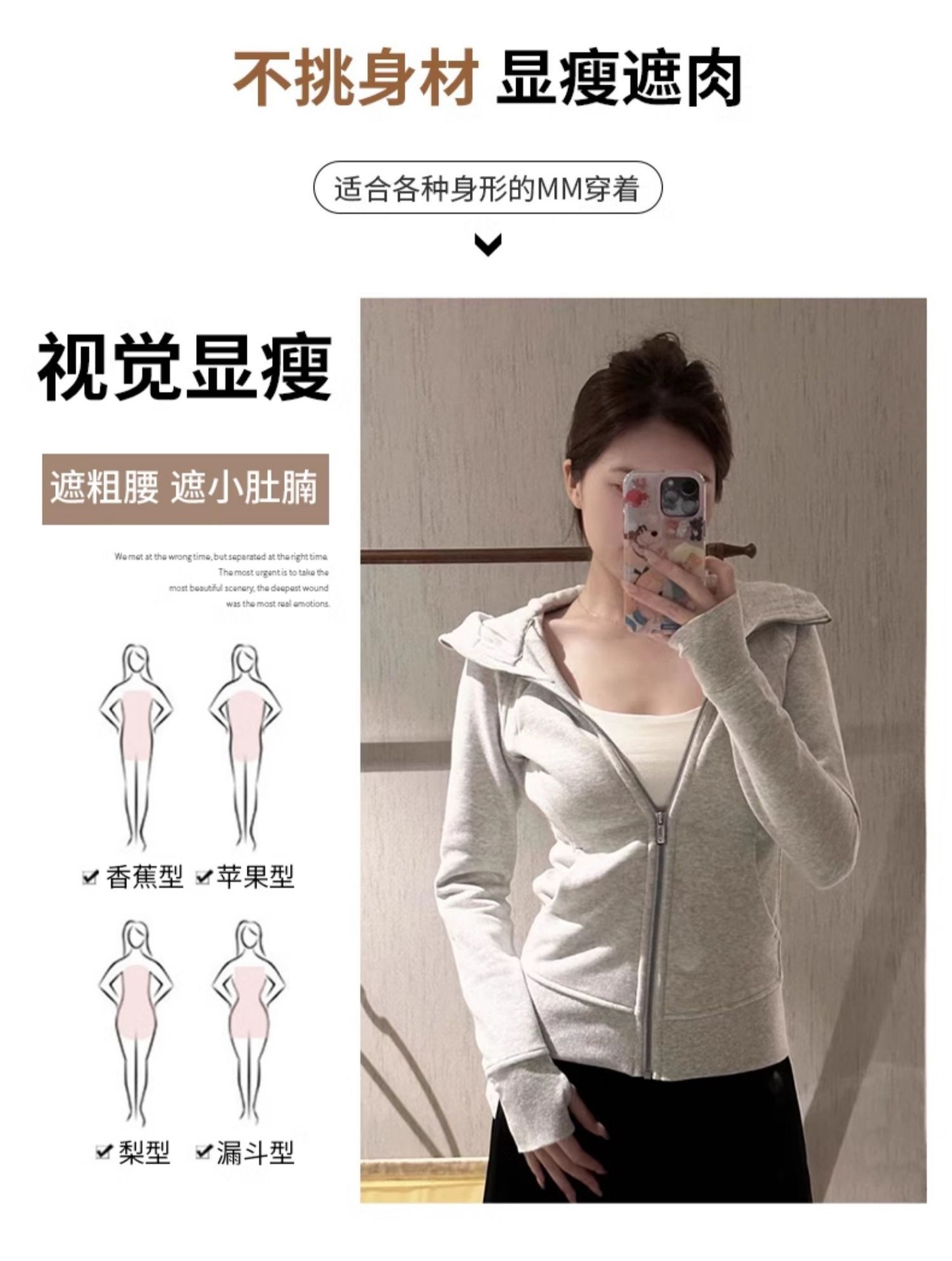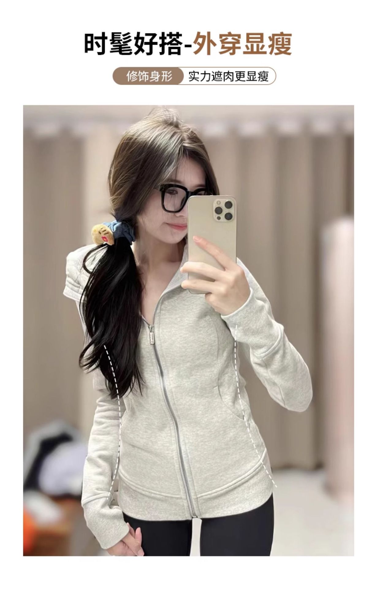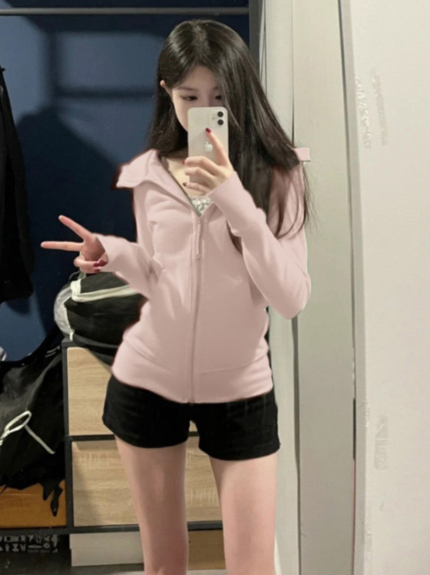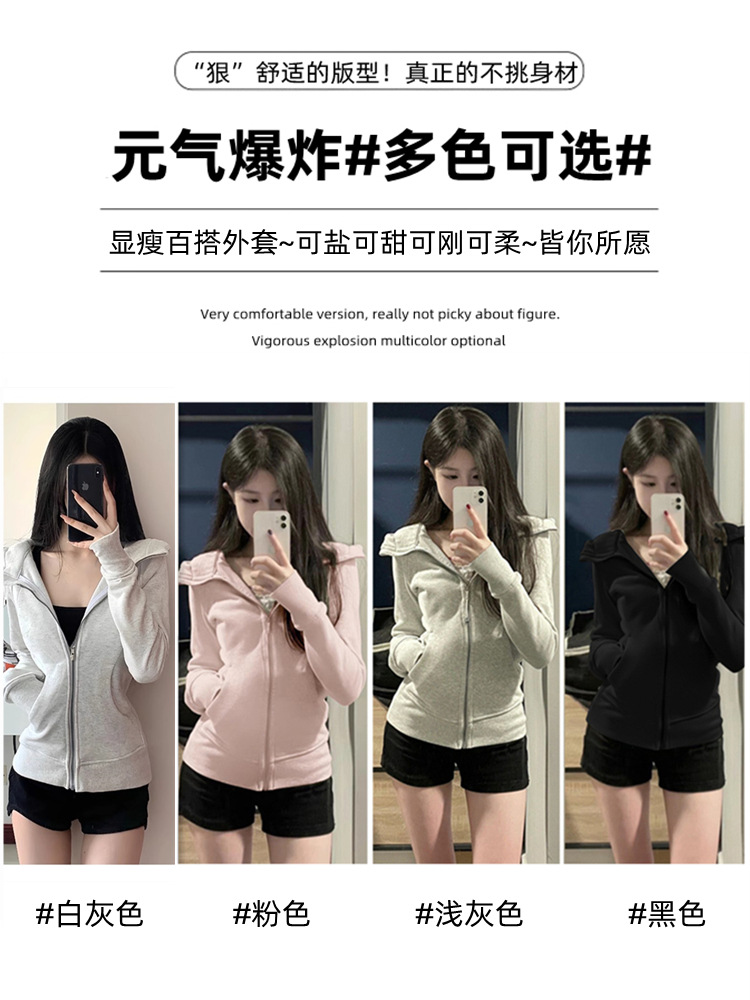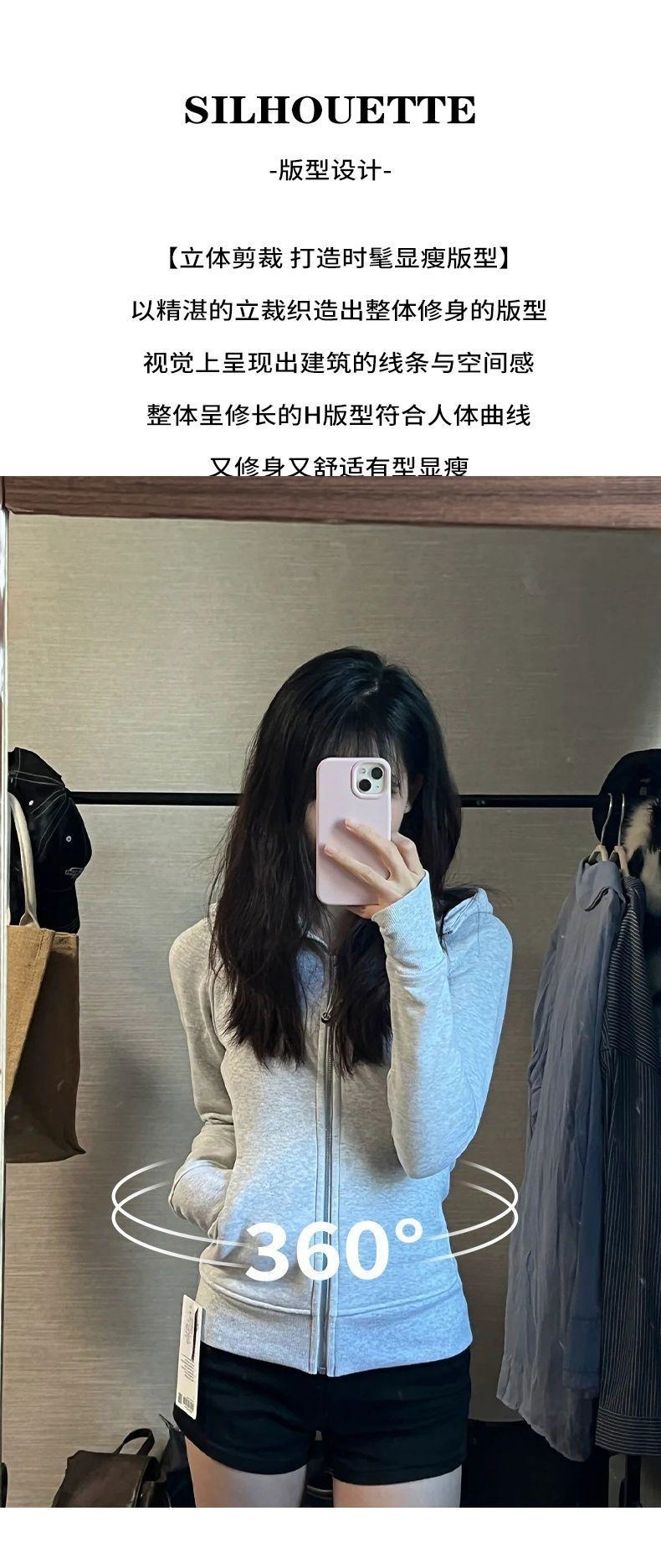 lulu平替曼巴棉显瘦收腰卫衣短外套2025春秋新款修身开衫拉链上衣💕