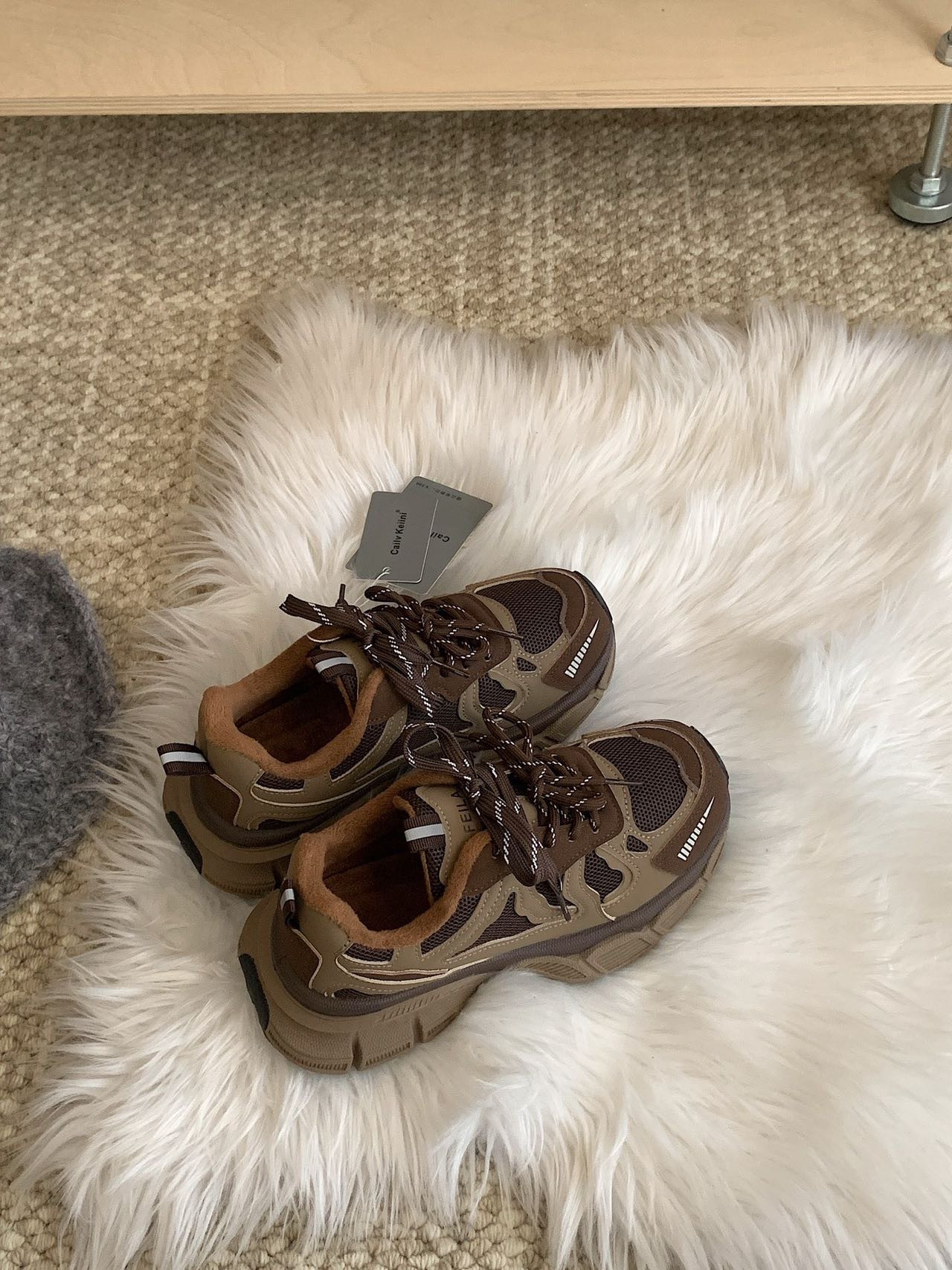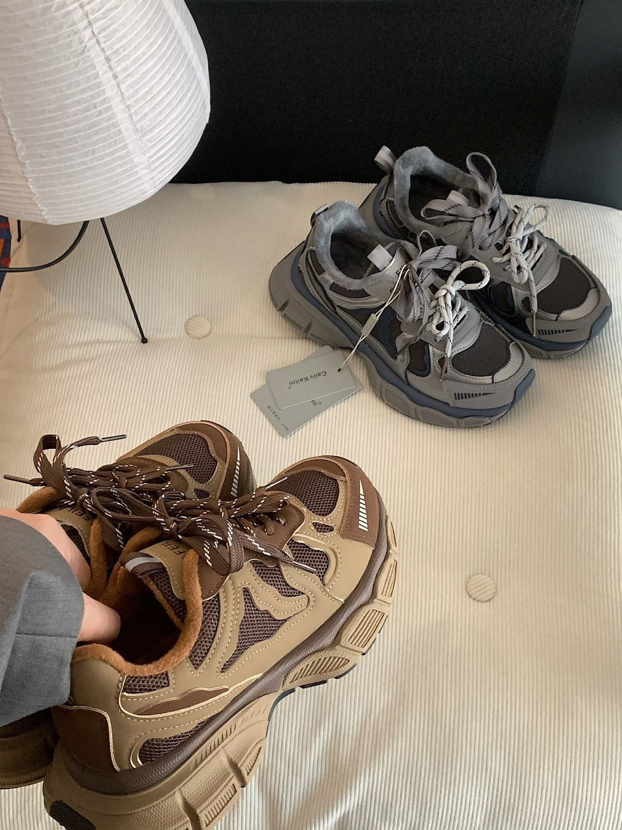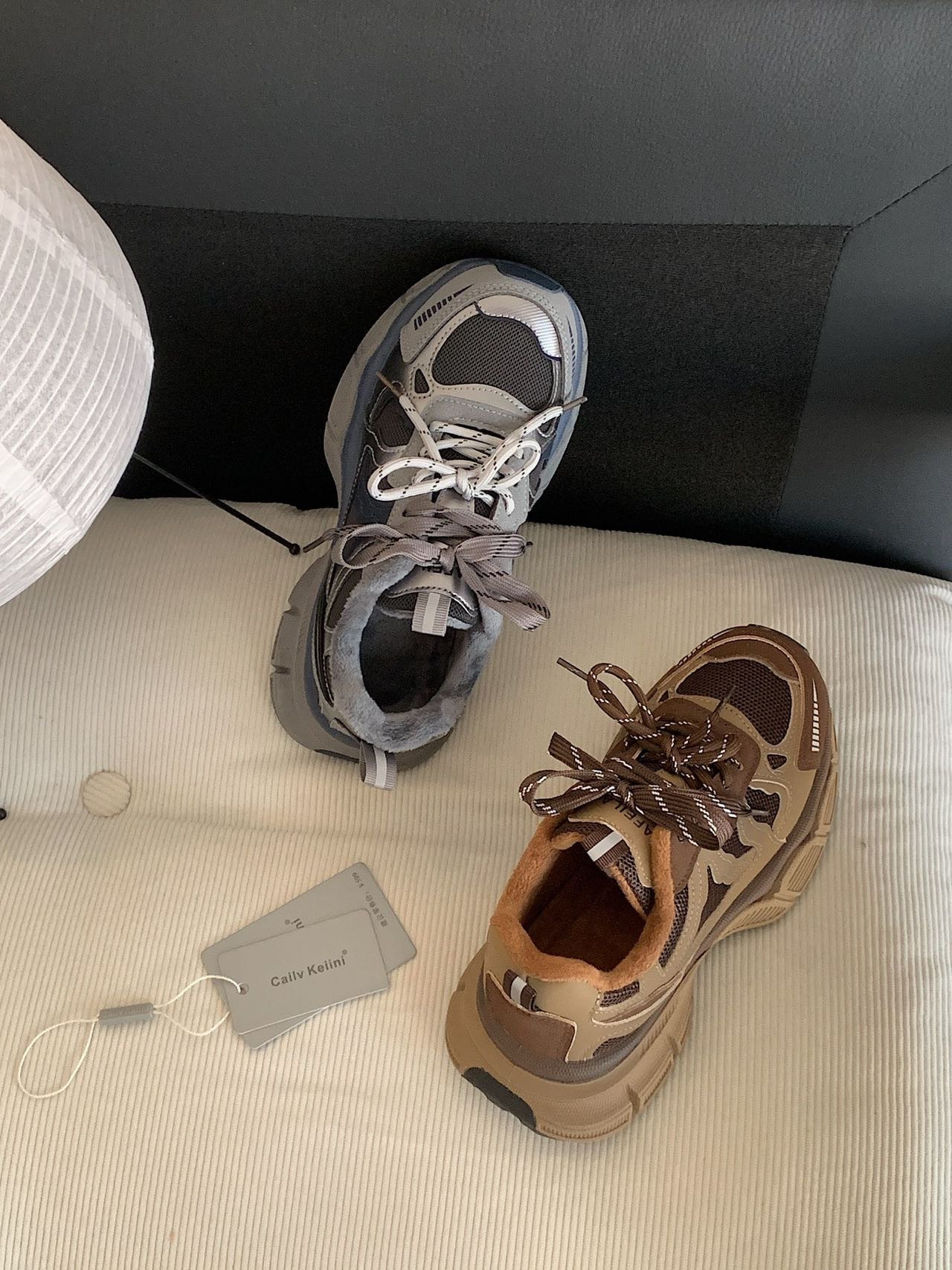 双鞋带设计老爹鞋,内里加绒,行走的暖炉, 冬日必备 ,搭配牛仔裤,鲨鱼打底裤都赞。