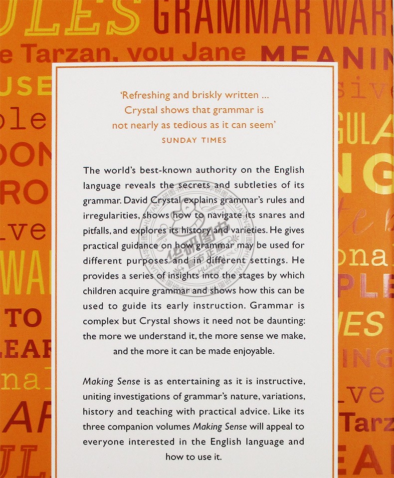 The world's greatest authority on language explains the secrets and subtleties of the grammar of English. David Crystal explores its history and varieties, explains its rules and irregularities and shows how to navigate its snares and pitfalls. He gives practical guidance on how grammar is used in different ways for different purposes and in different social settings. In a series of revealing illustrations he also considers what learned and prominent people have said about English grammar over the centuries. Like its three companion volumes Making Sense will appeal to everyone interested in the English language and how to use it.